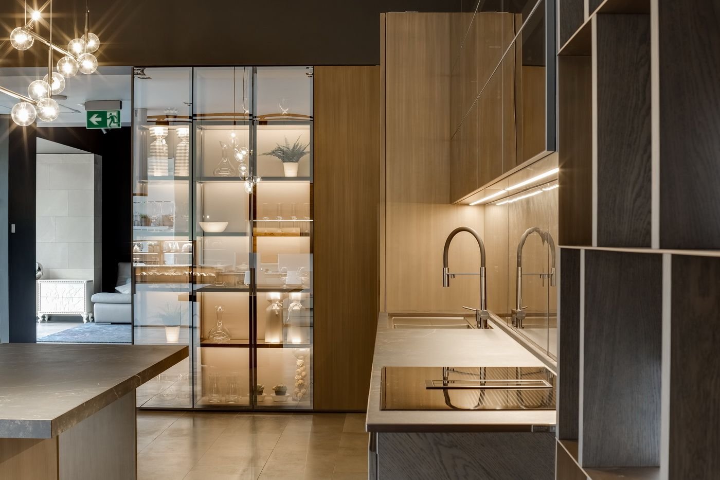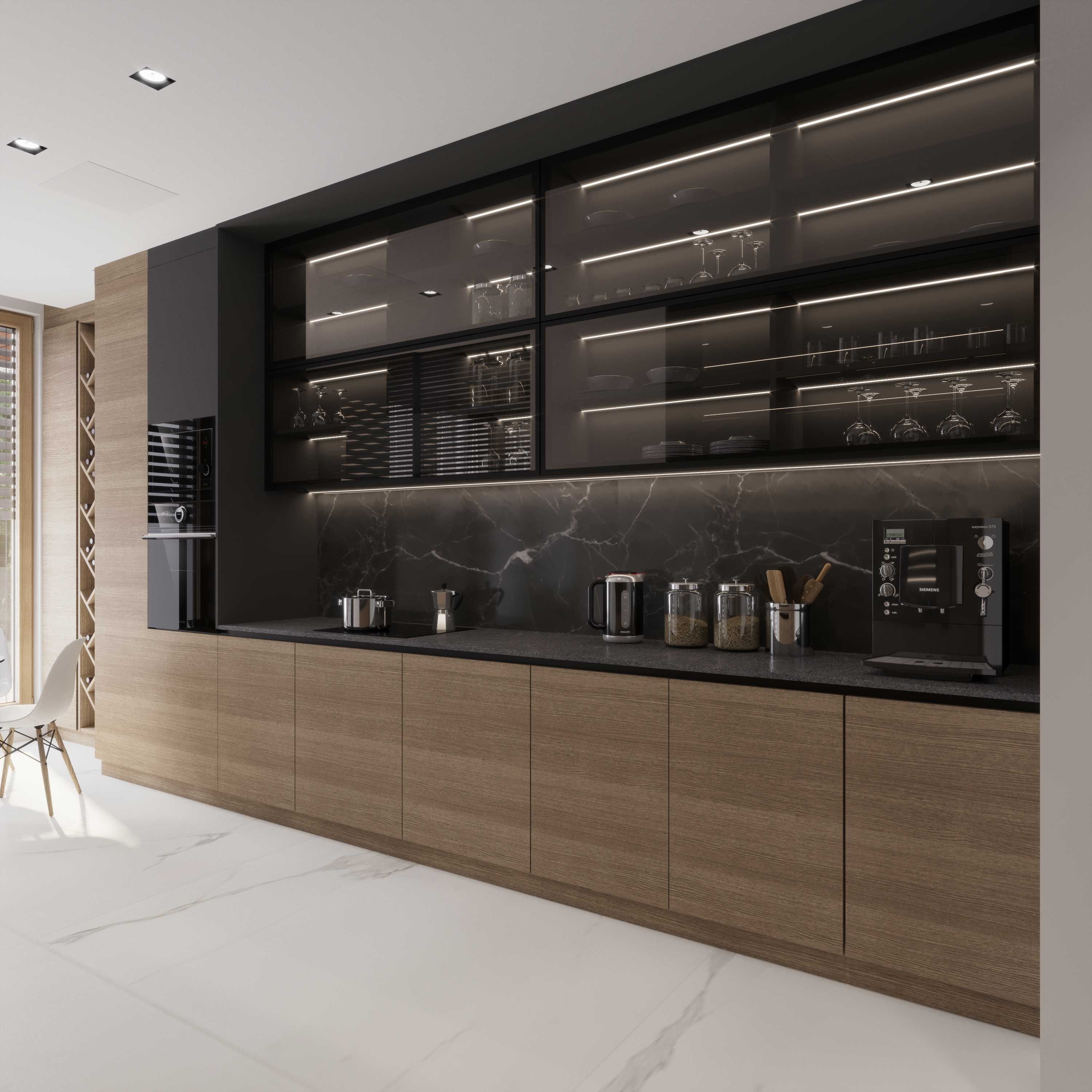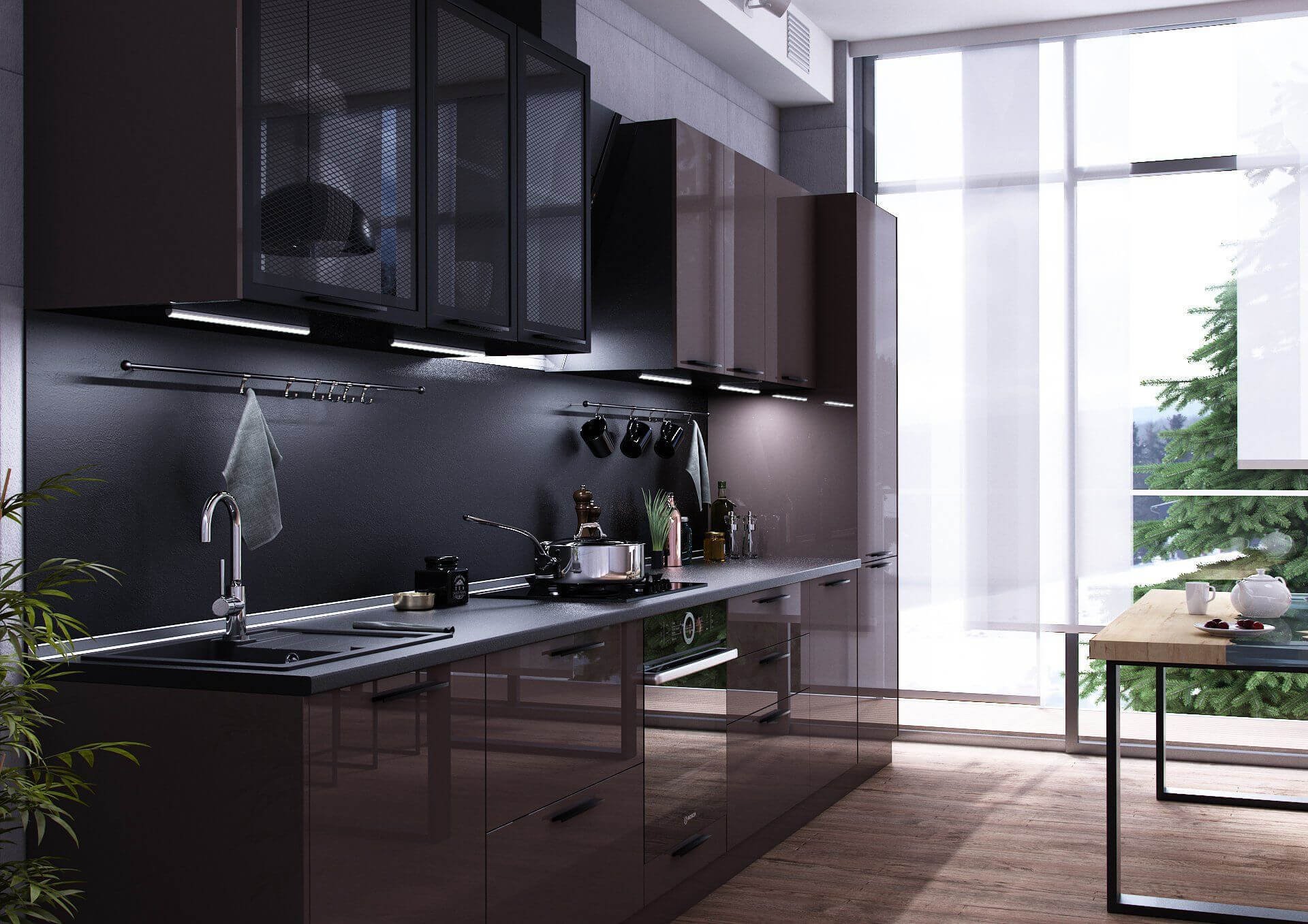 Современная кухня с стеклянным пеналом