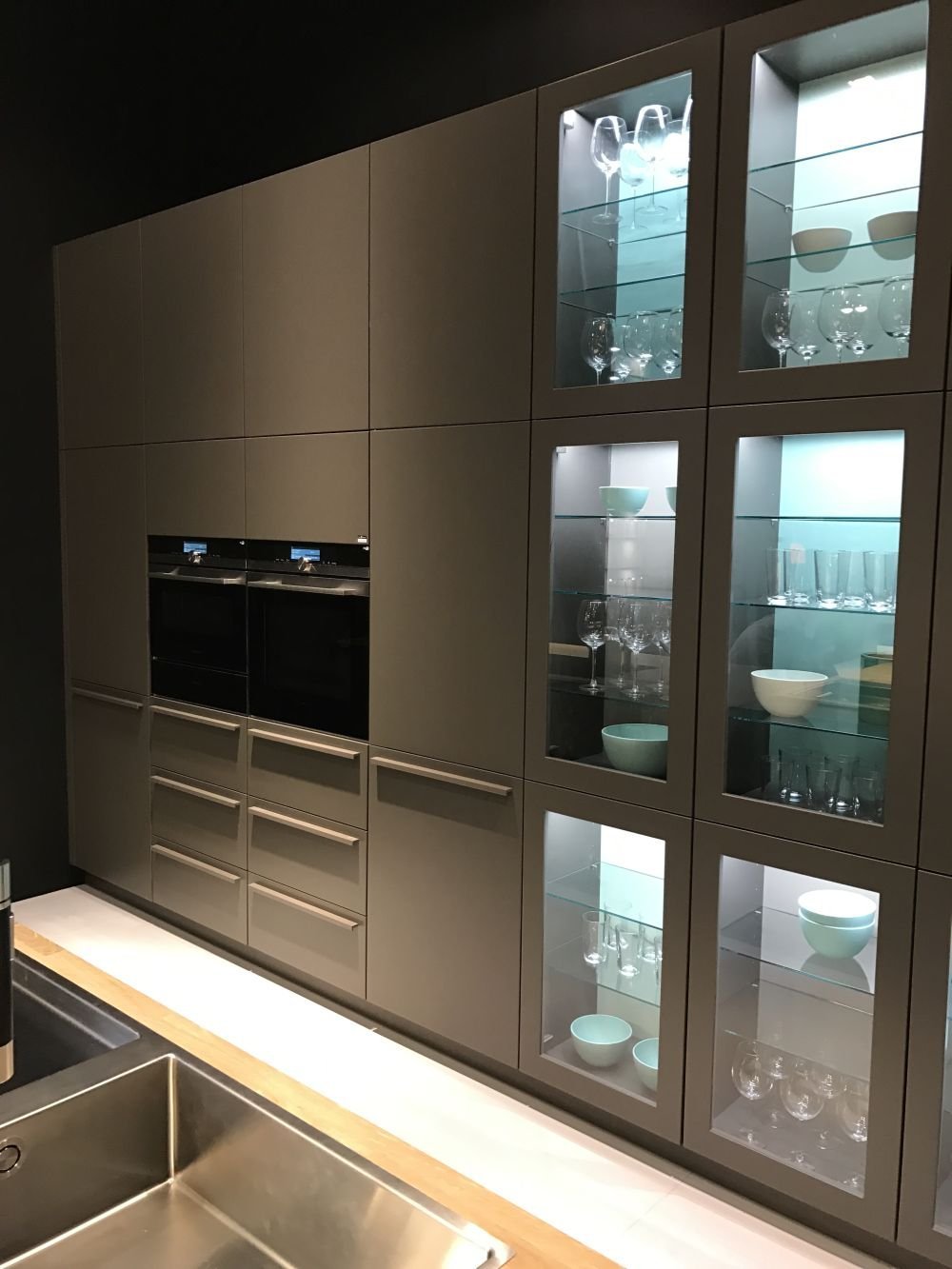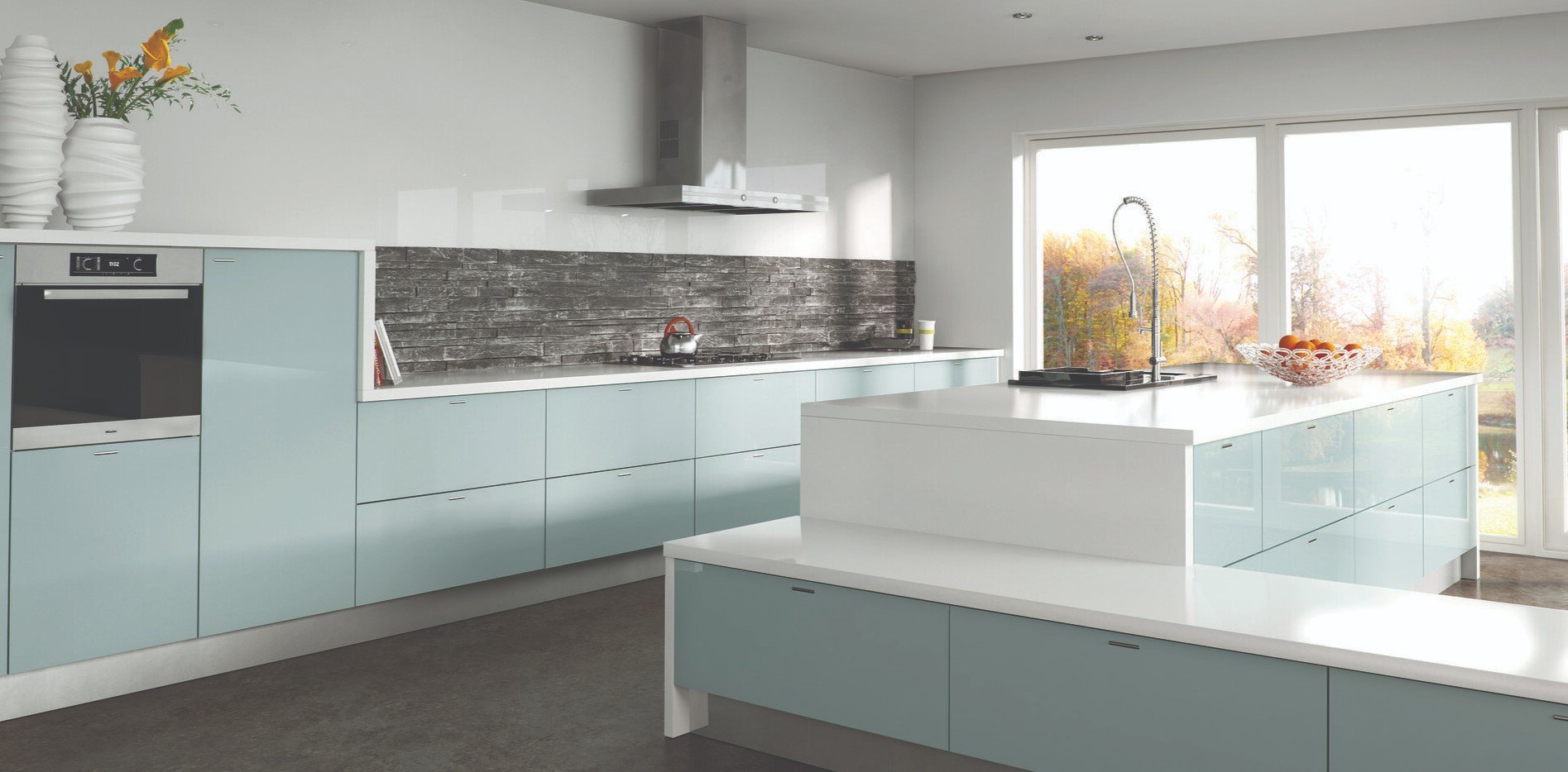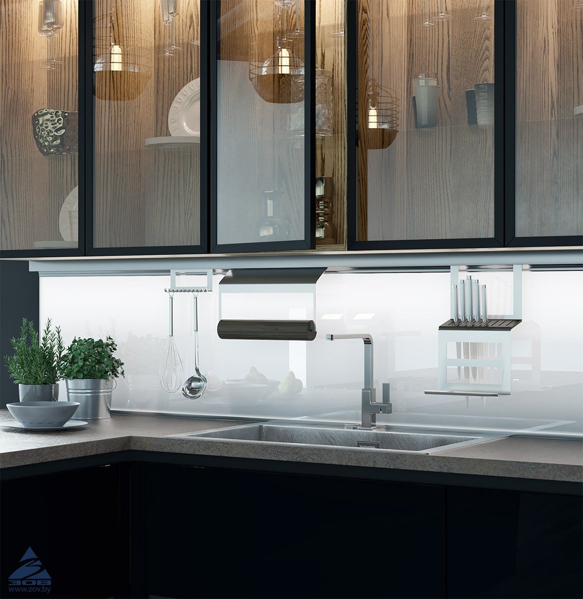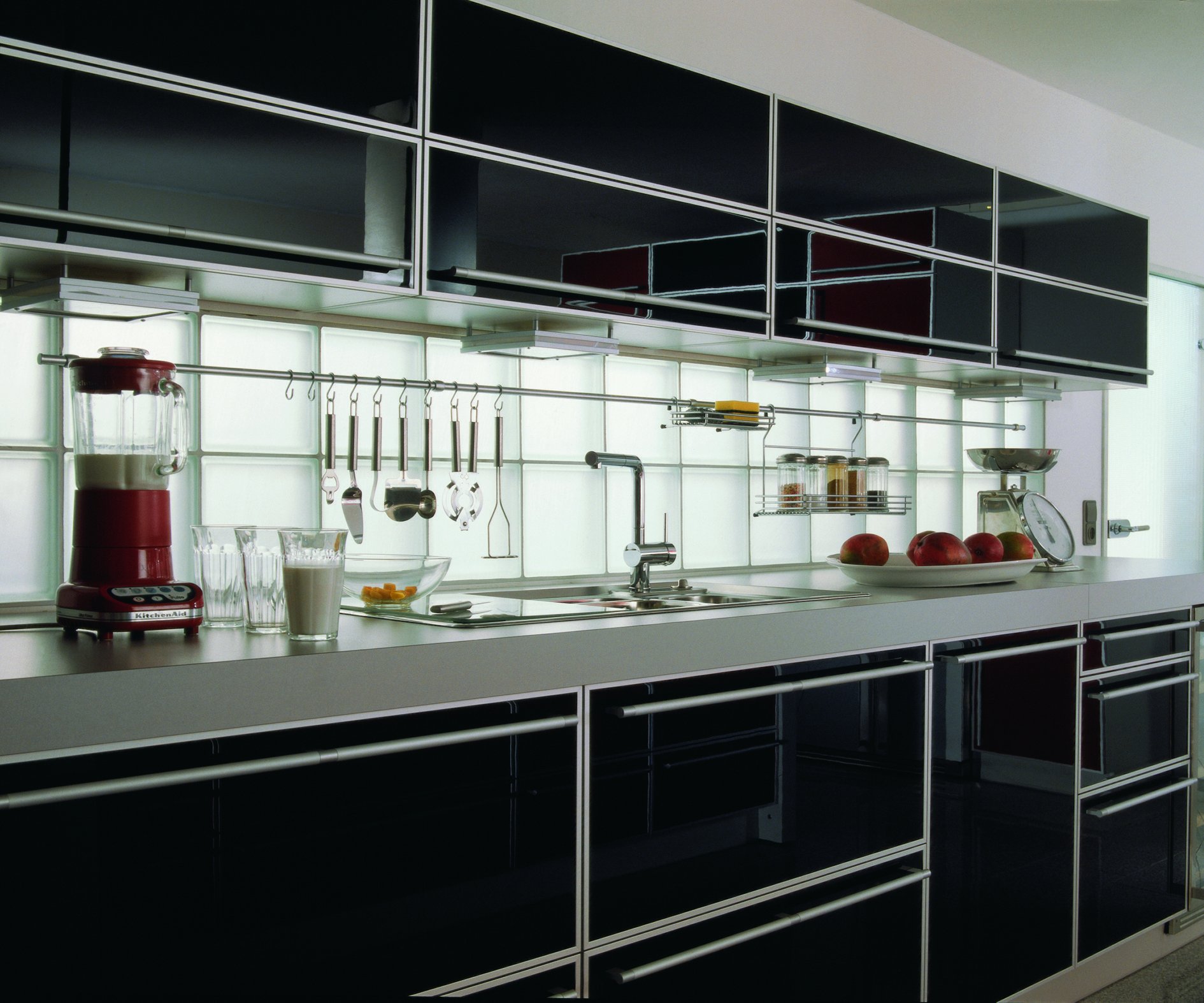 Стеклянные фасады кухни в современном стиле