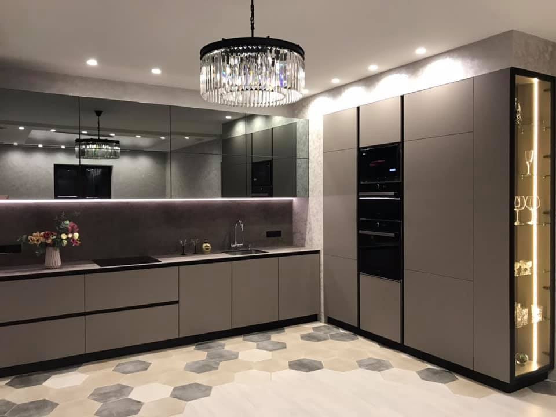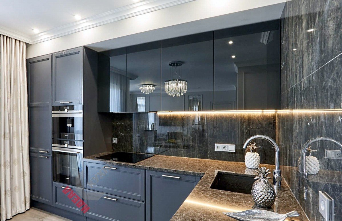 Кухня с зеркальными фасадами
