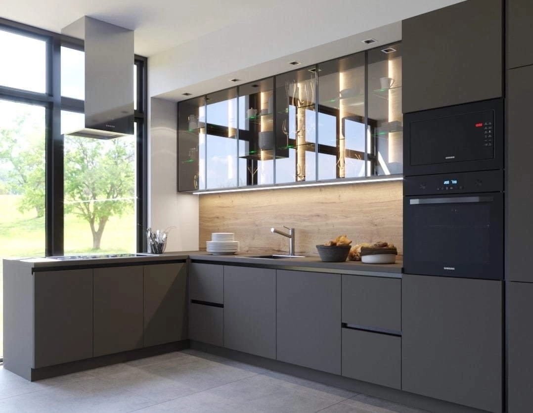 Современные кухни со стеклянными фасадами
