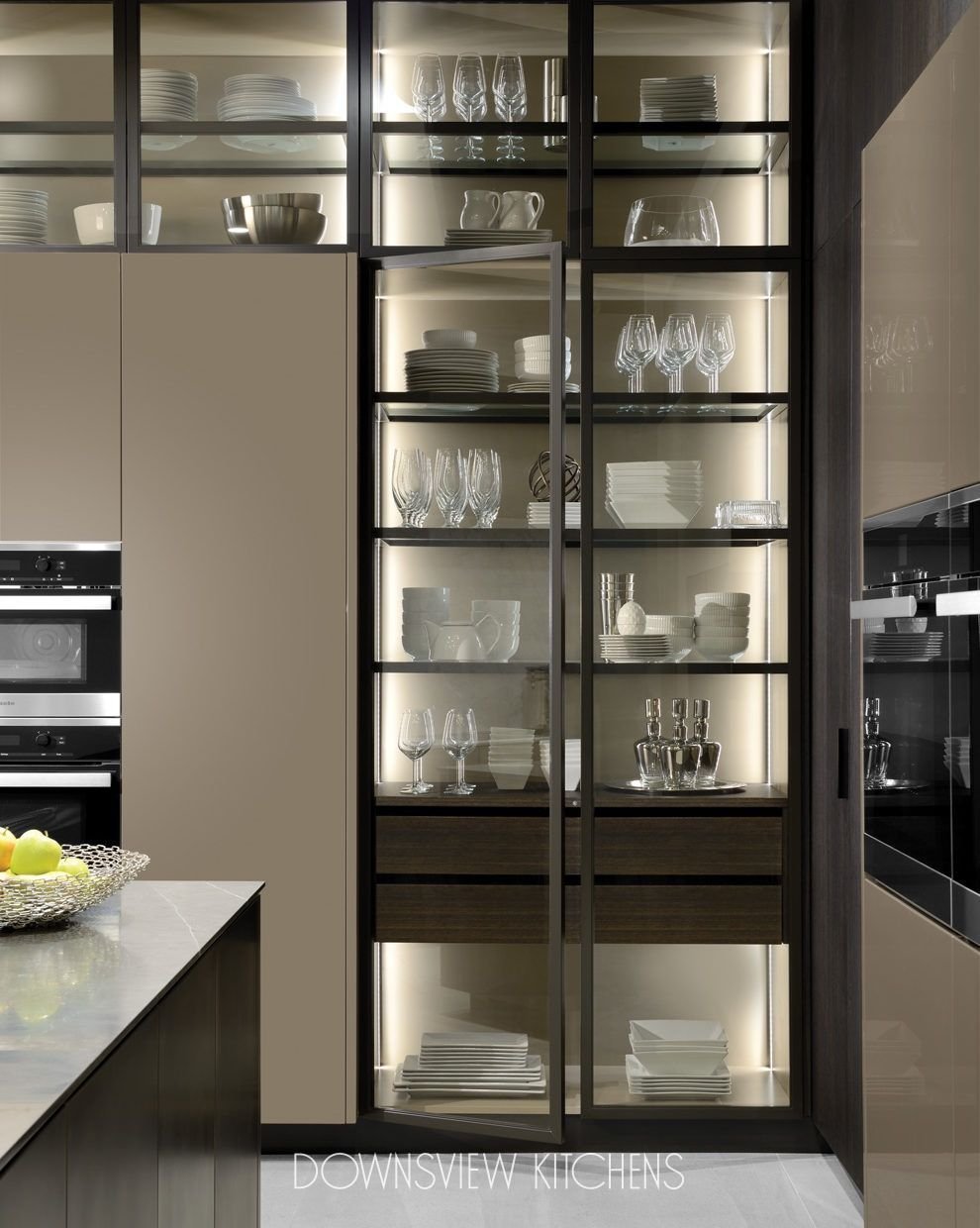 Стеклянные шкафы на кухне