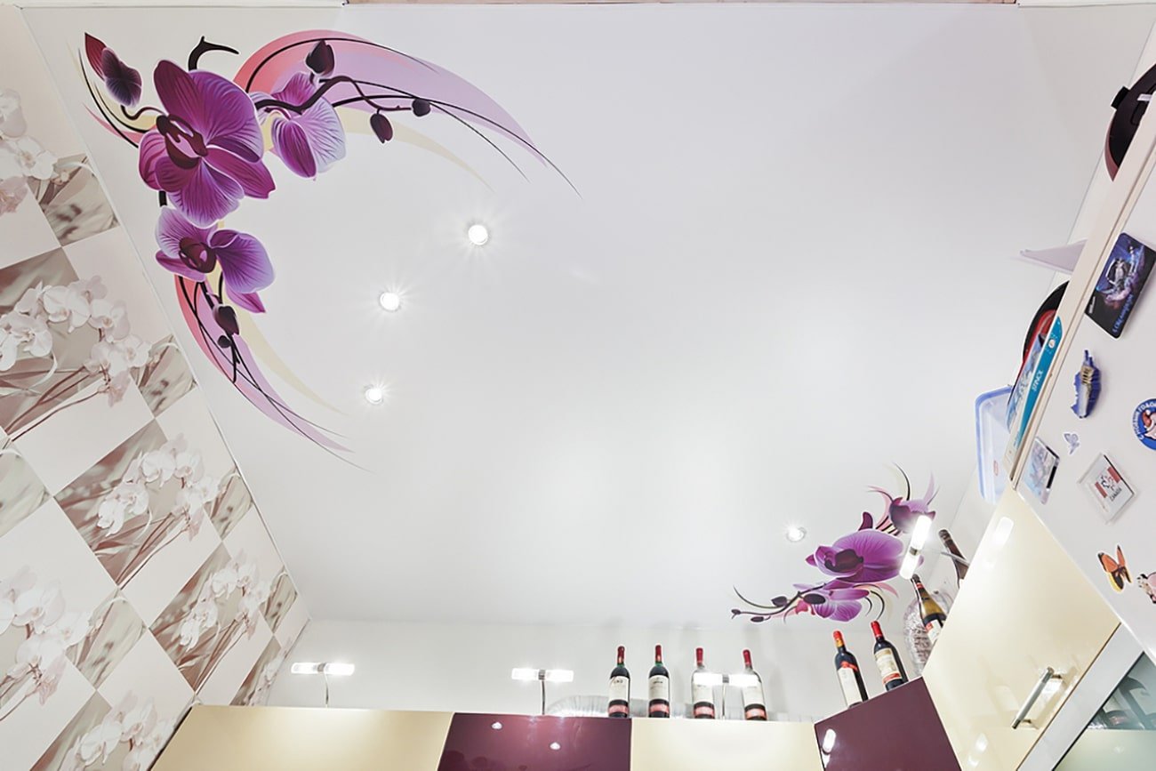 Натяжные потолки фотопечать цветы для кухни