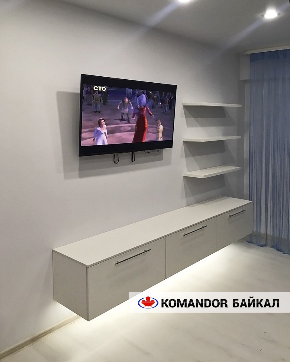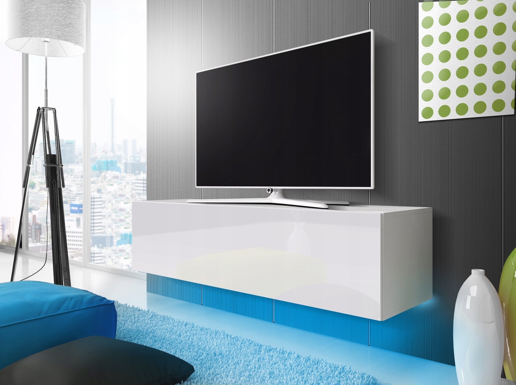 Тумба под ТВ Виго подвесная Модерн глянцевый МДФ белая большая