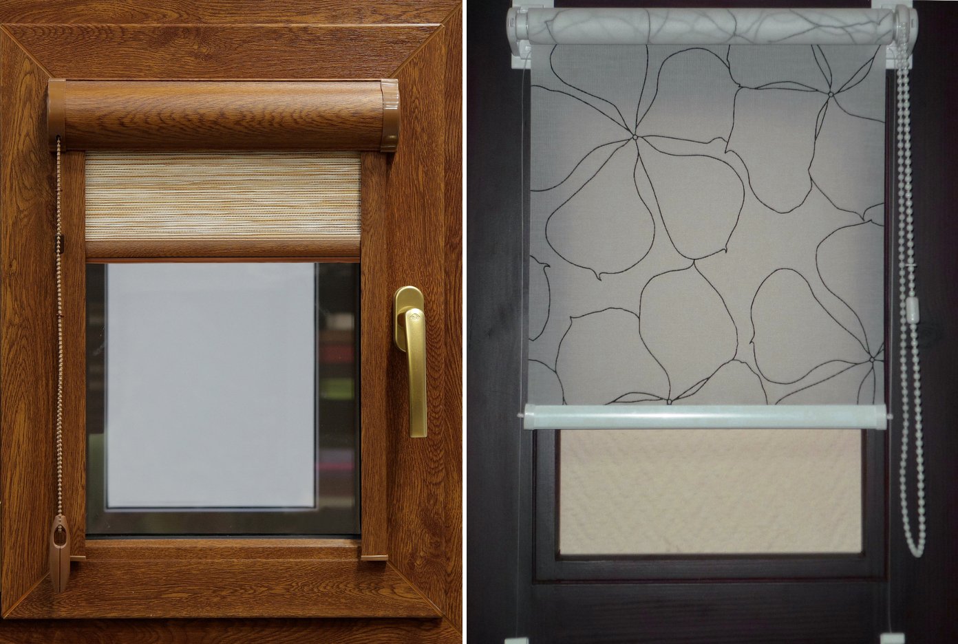 Рулонные шторы на ламинированном окне