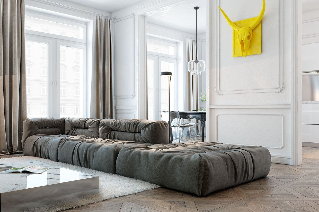 Линкруста в интерьере гостиной в стиле Неоклассика