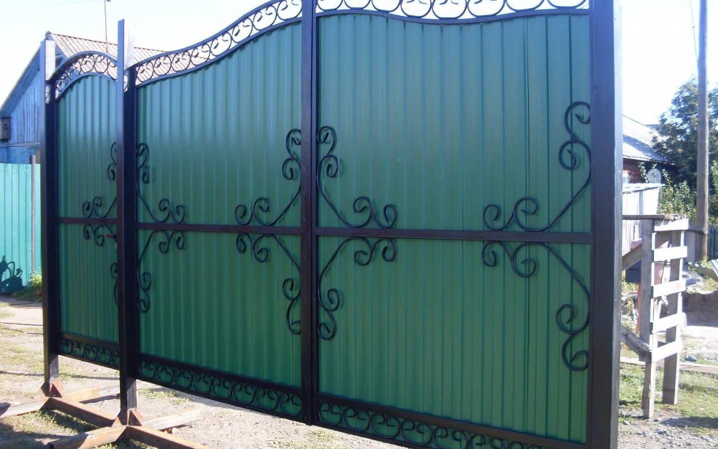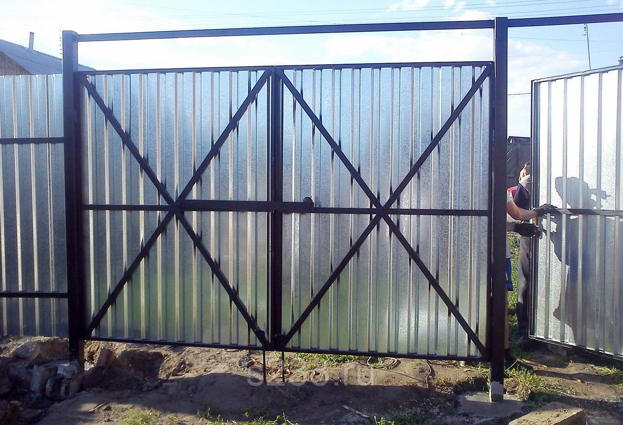 Ворота из профильной трубы 40х20 и профнастила распашные с утеплителем