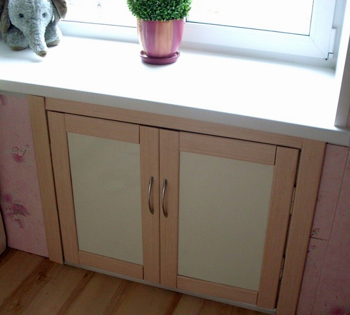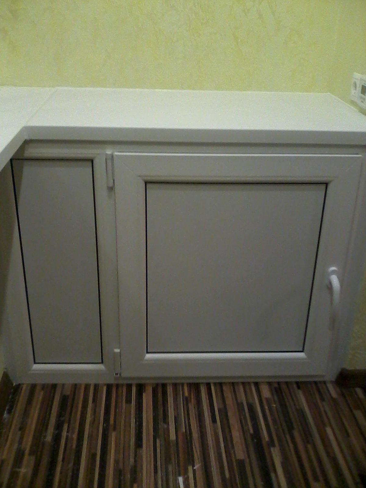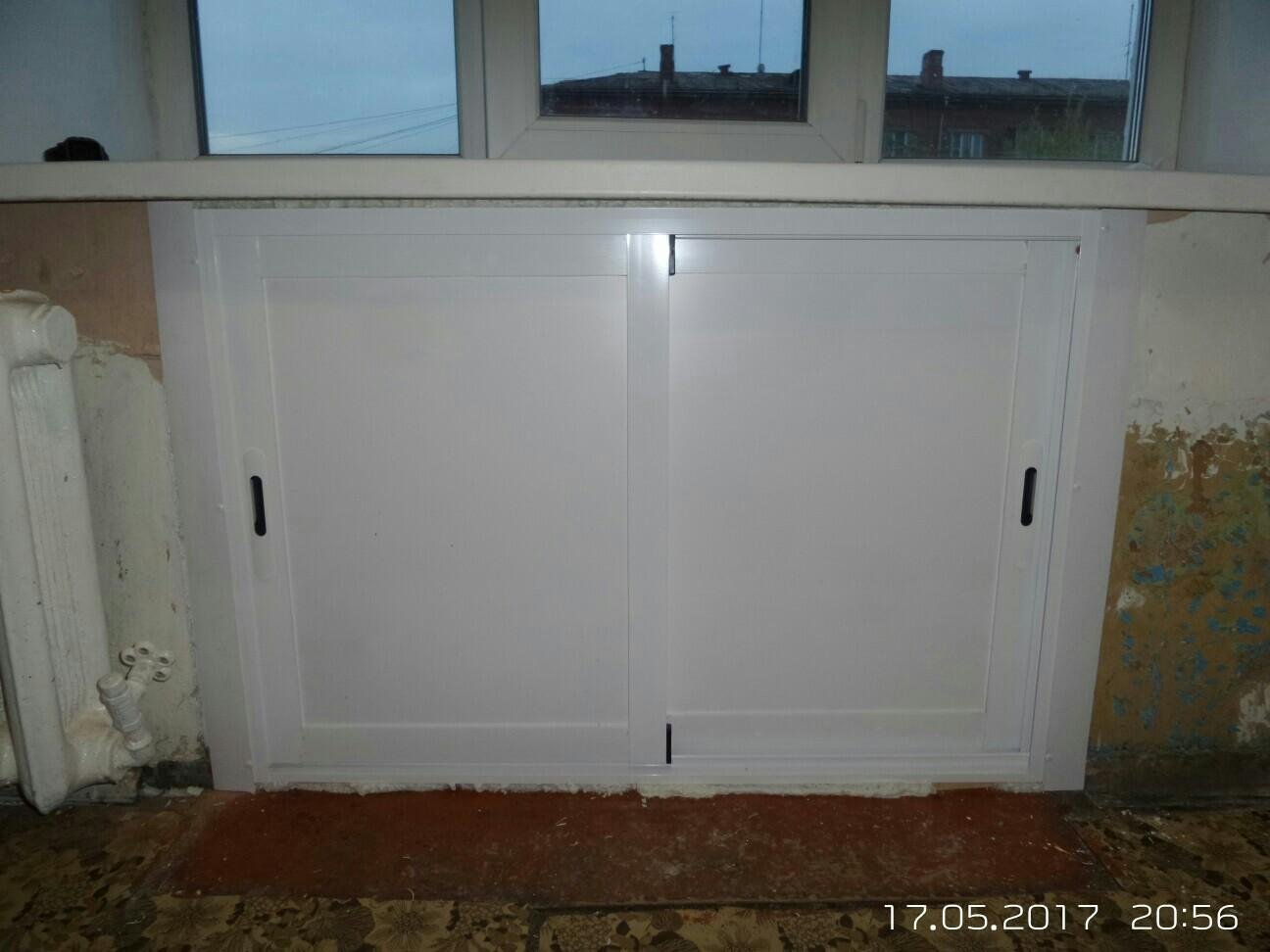 Пластиковые дверки под окном