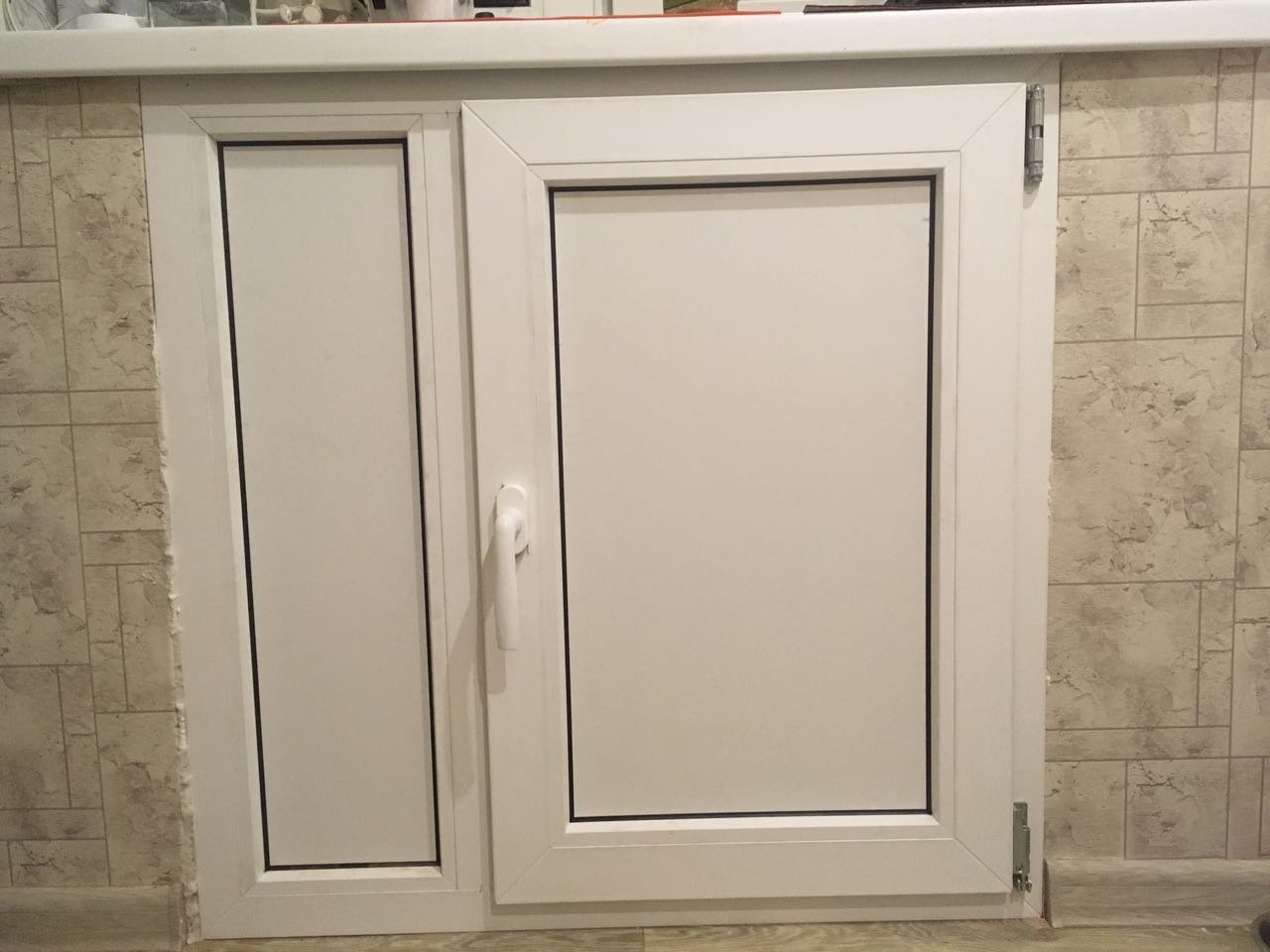 Пластиковые двери под окном на кухне