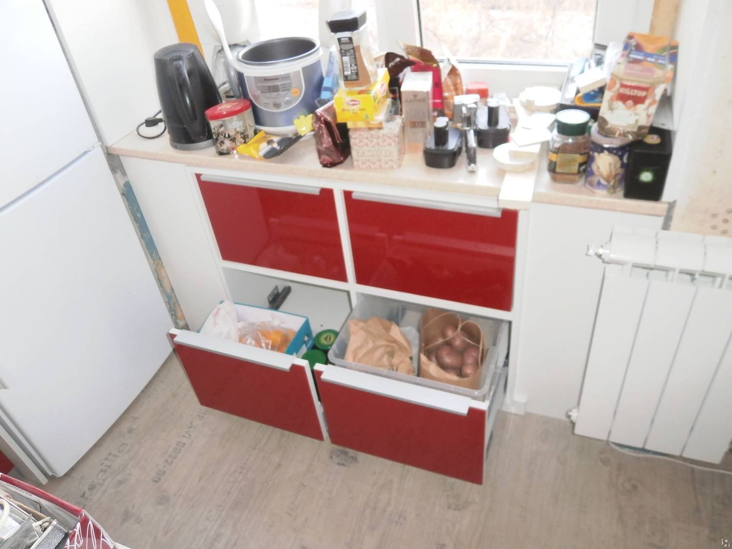 Выдвижные ящики под окном вместо зимнего холодильника