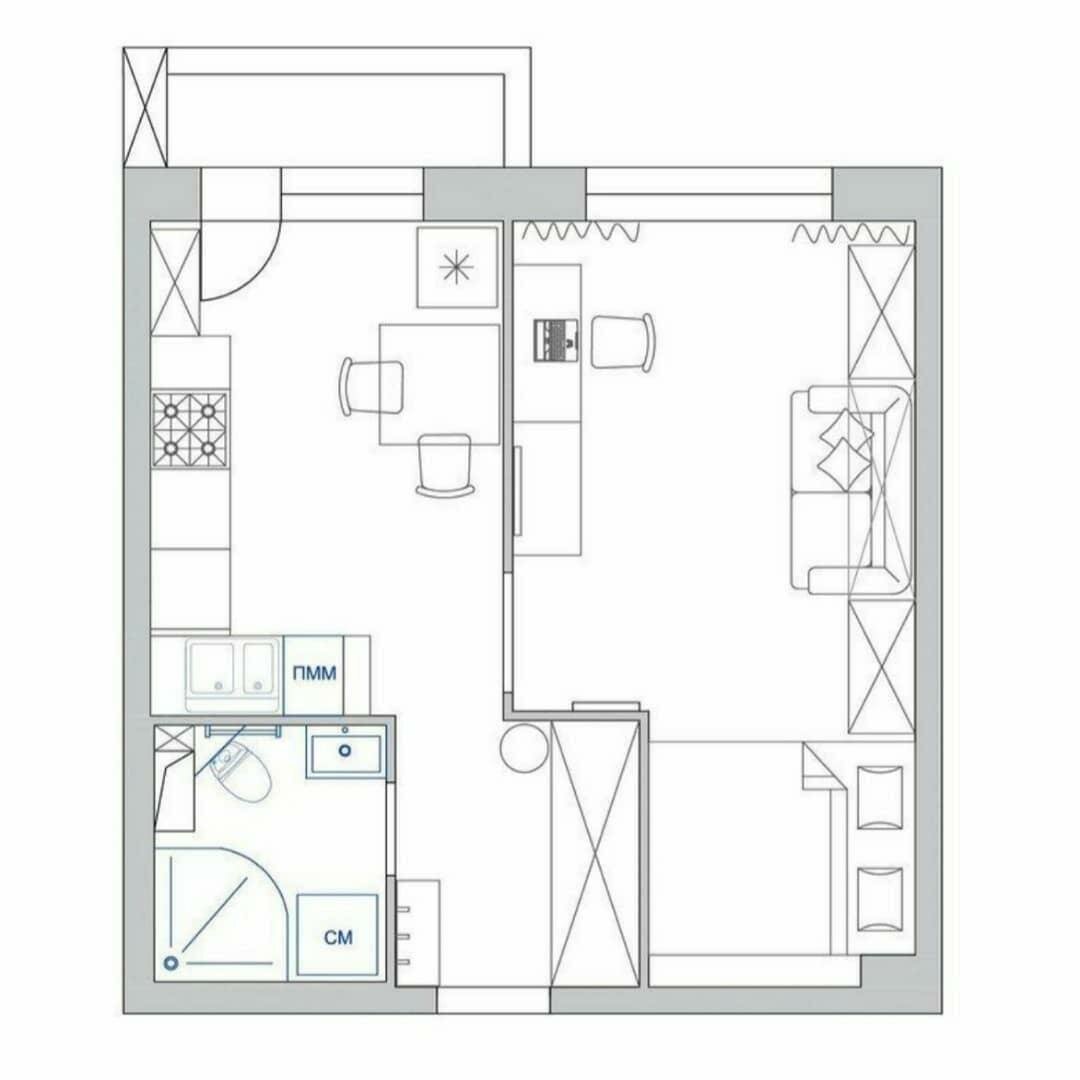 Интерьер однокомнатной квартиры 40 кв.м в панельном доме