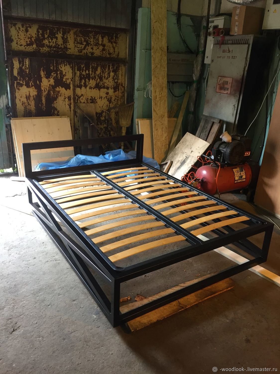 Кровать в стиле лофт из металла индустриал