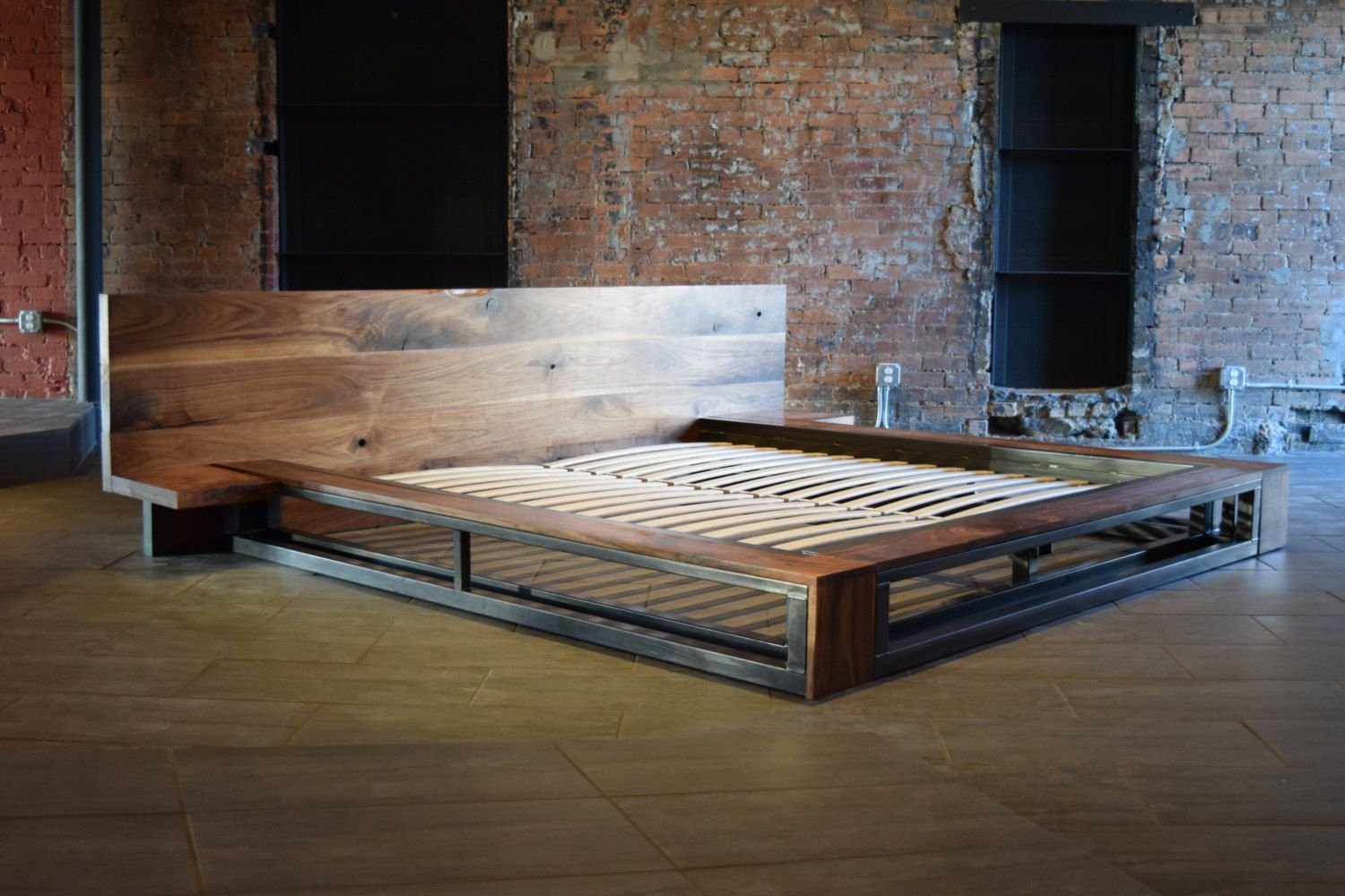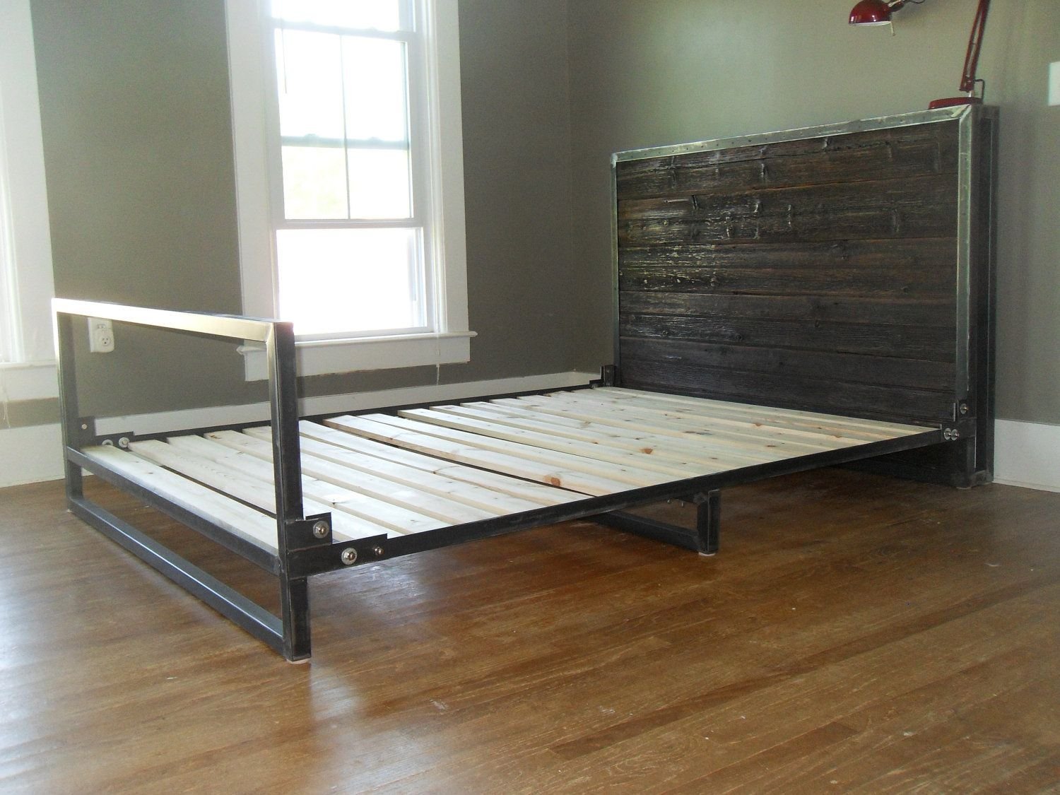 Кровать в стиле лофт из металла и дерева