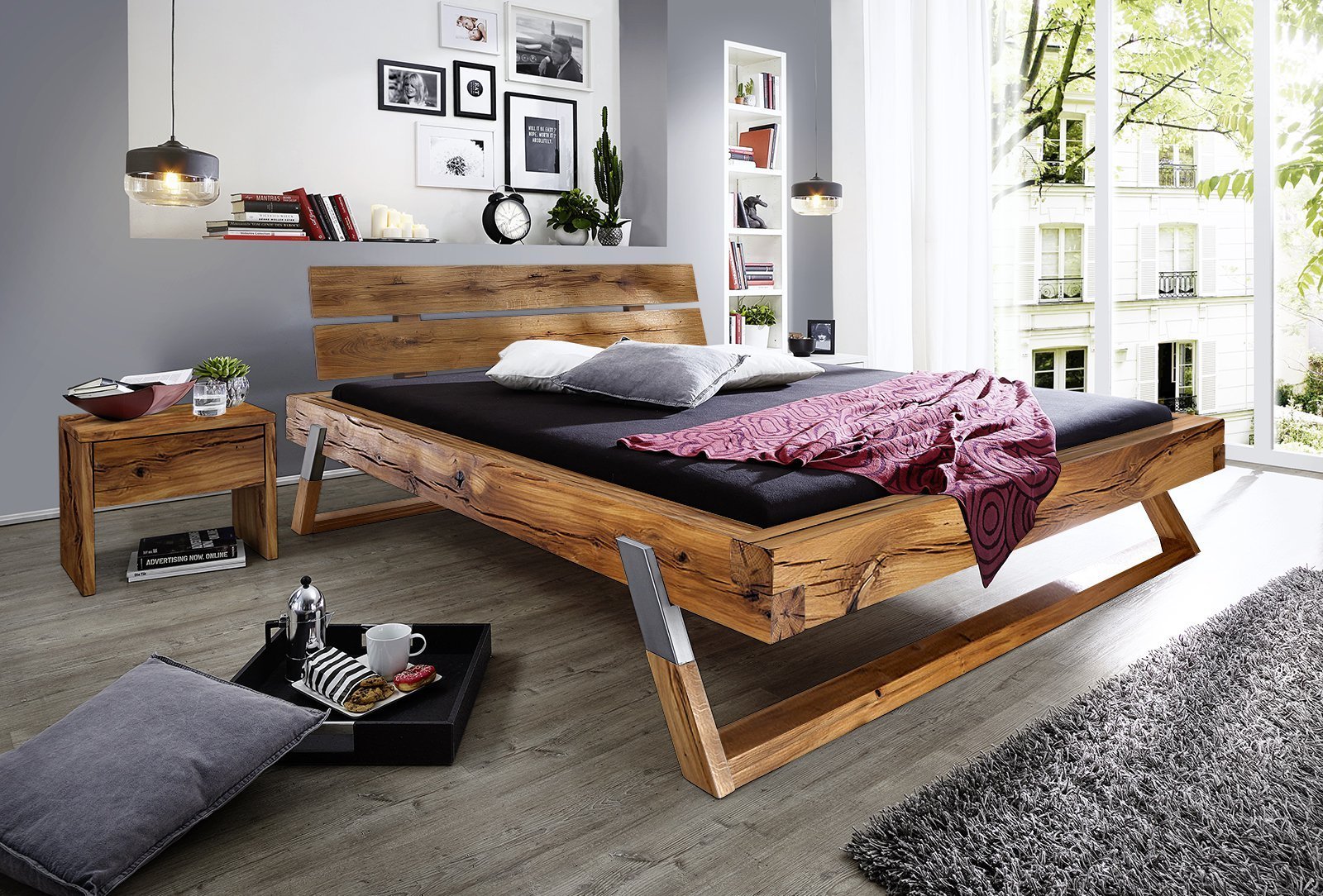 Кровати из массива дерева в стиле лофт