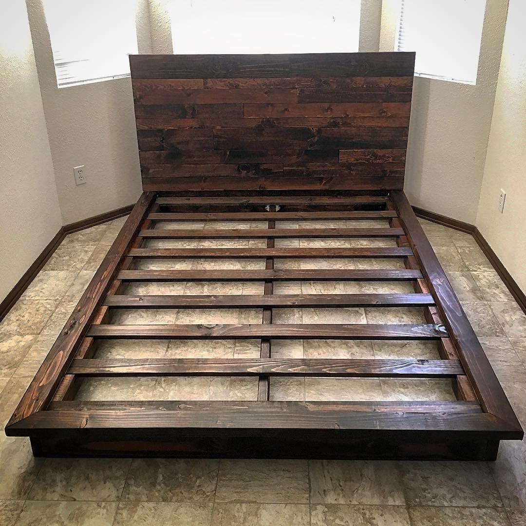 Двуспальная кровать из профильной трубы и дерева