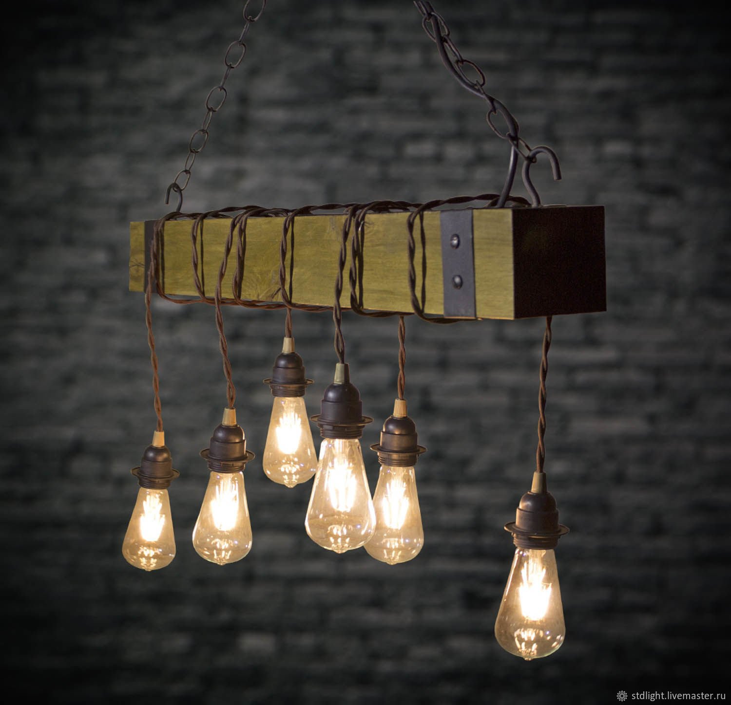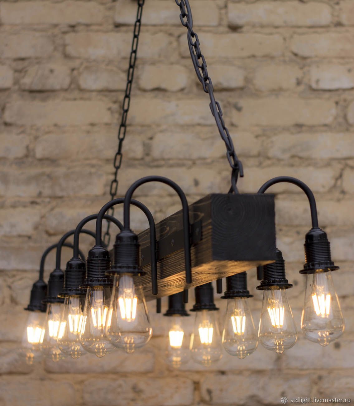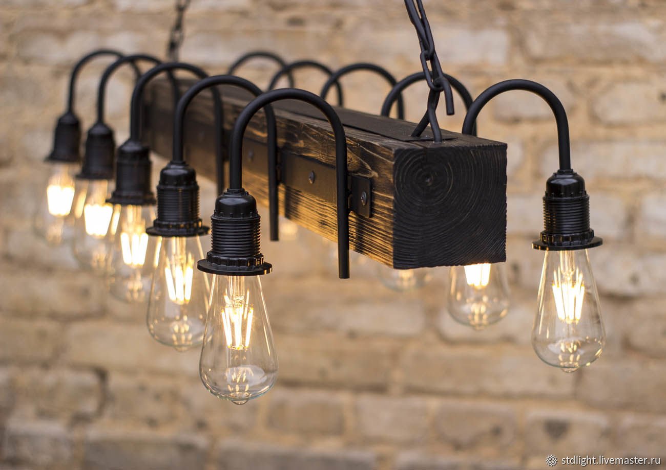 Люстра лофт из дерева и металла на 10 ламп 118 Loft