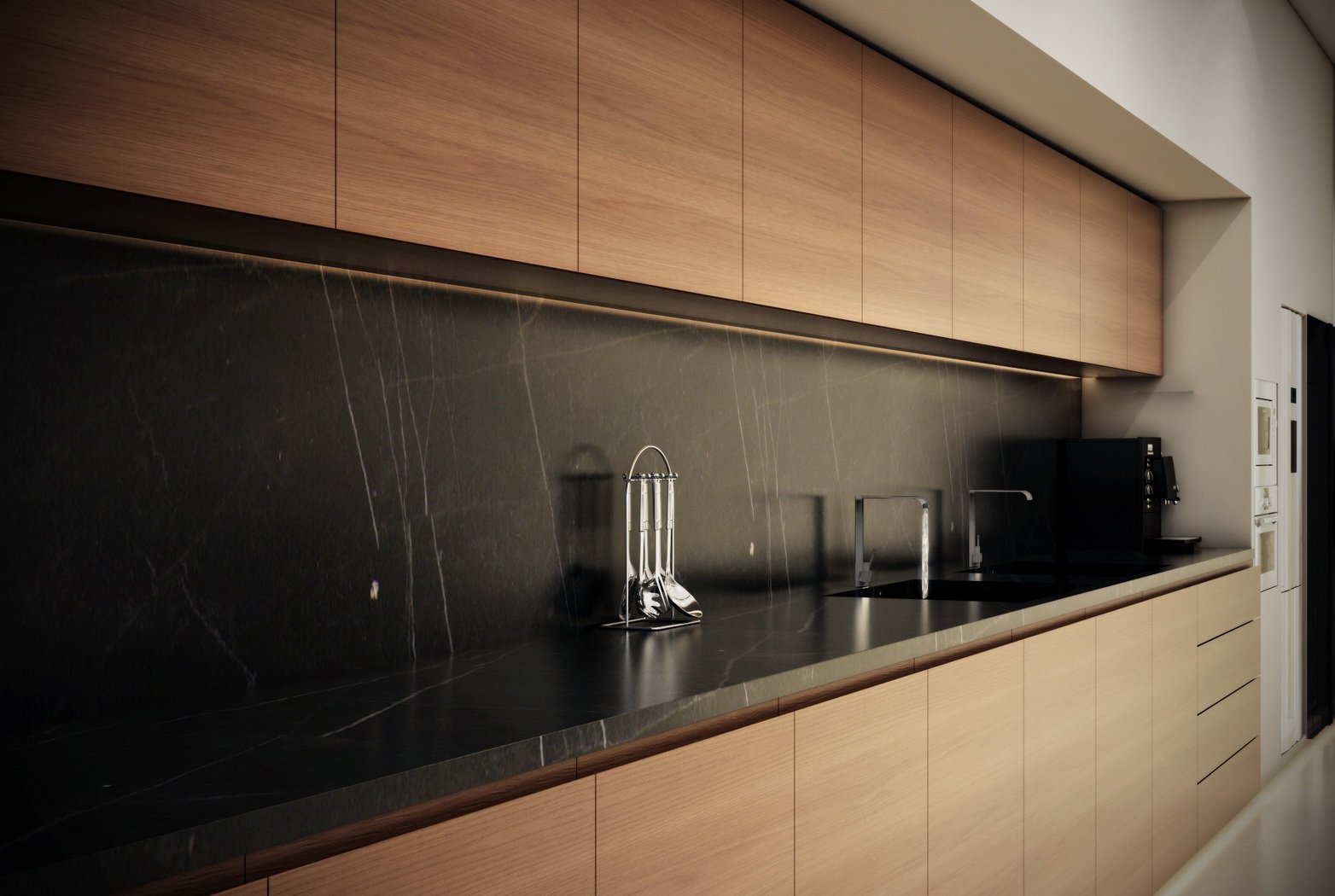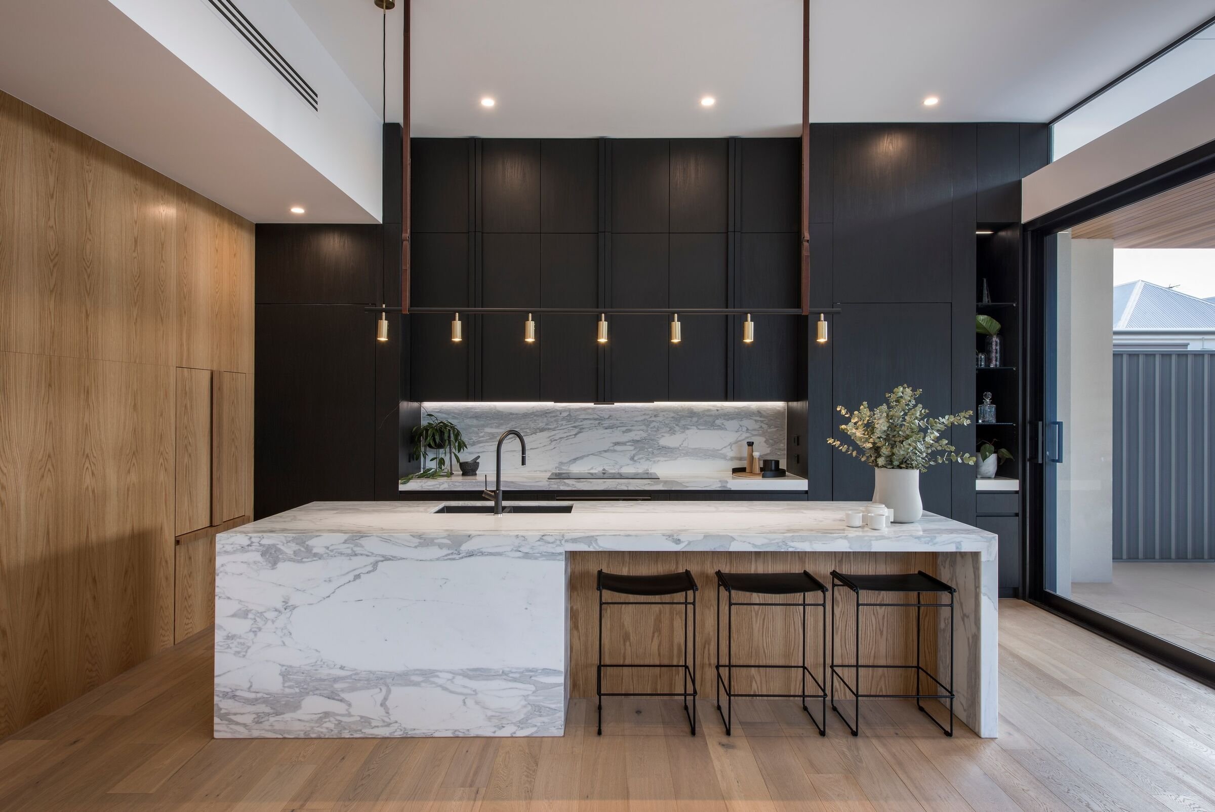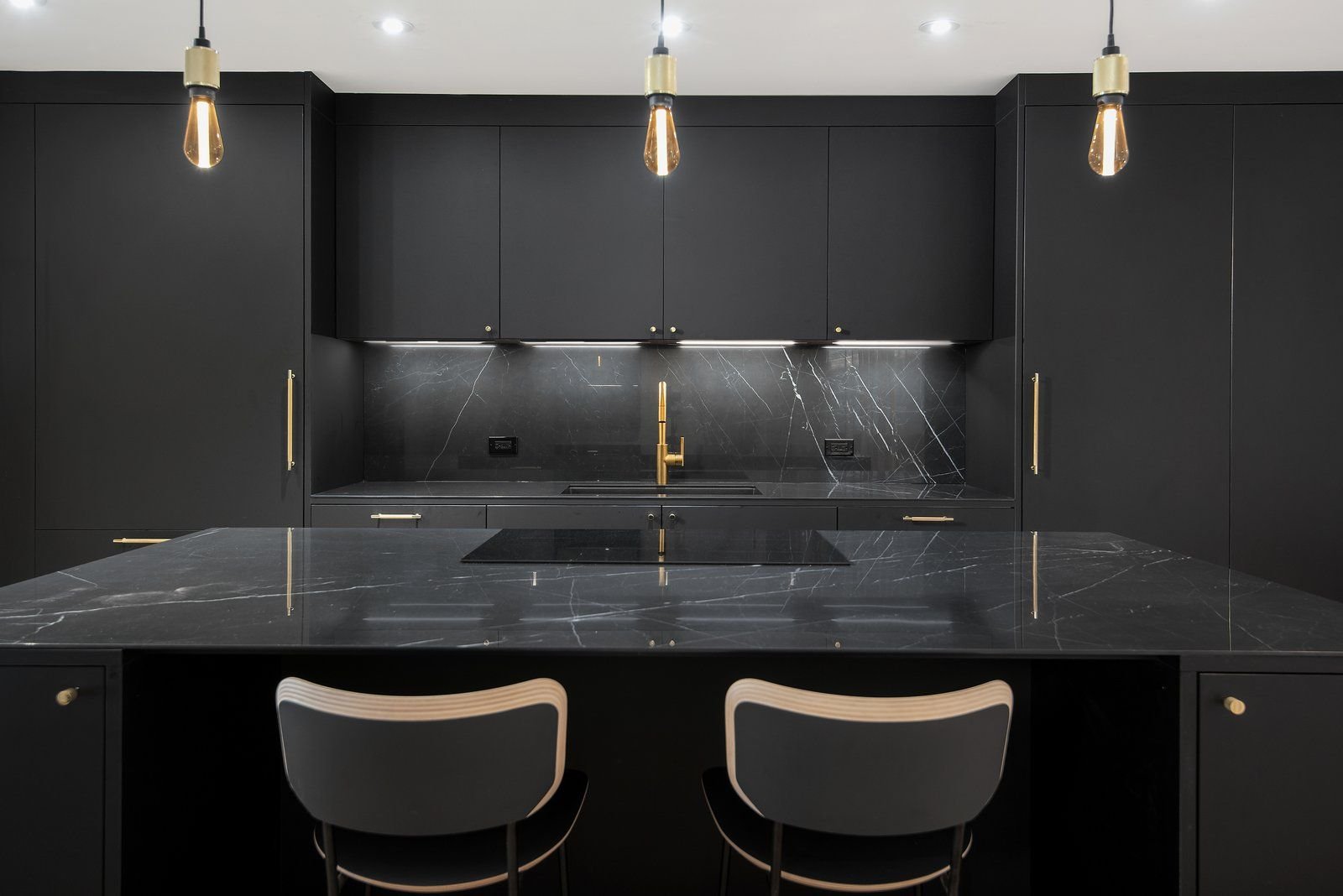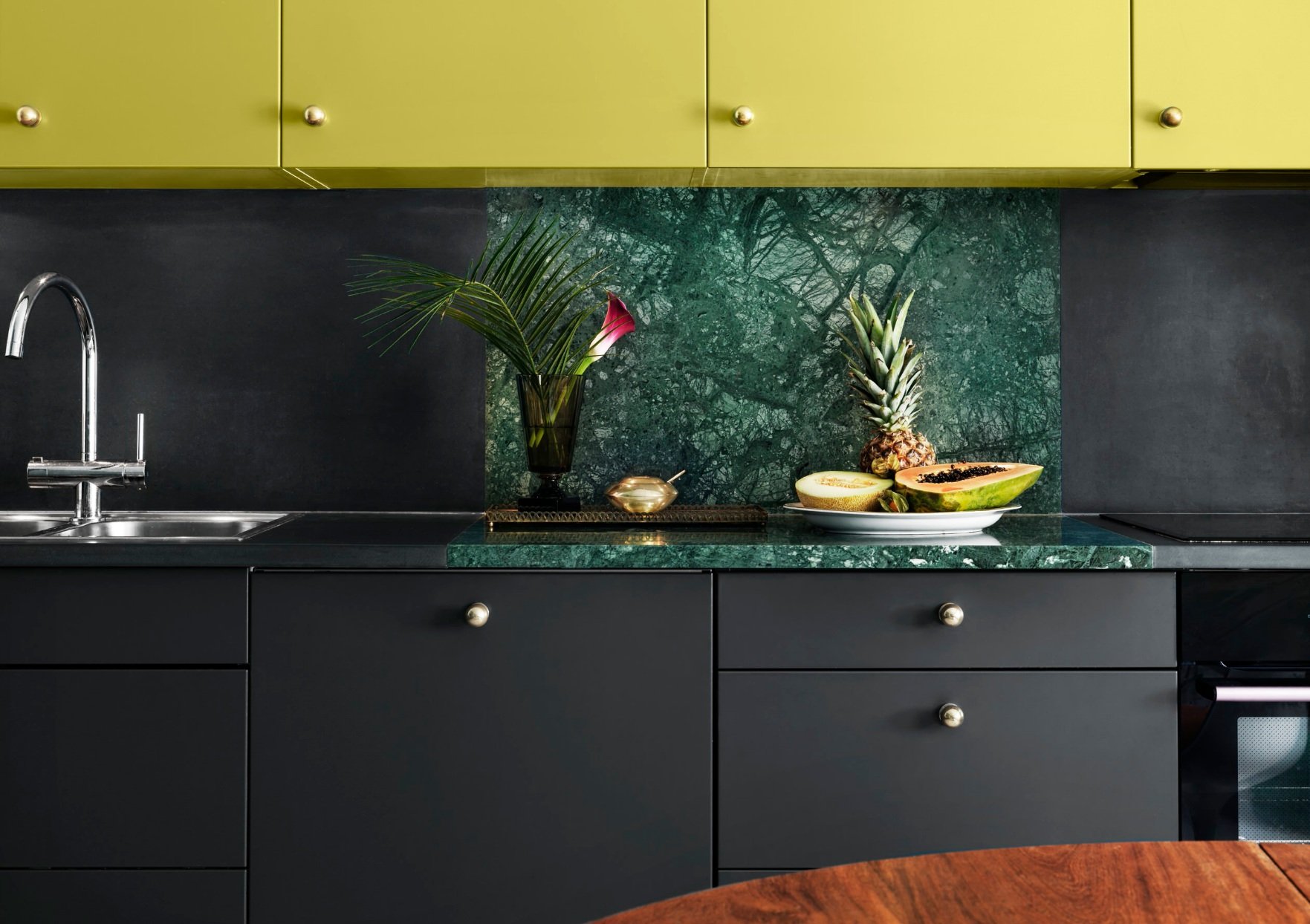 Черная мраморная кухня в интерьере