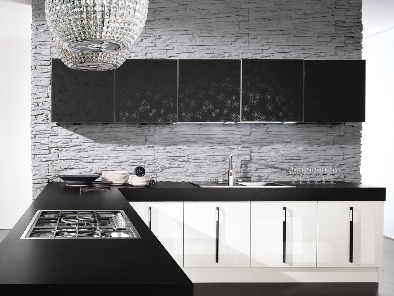 Черно белая кухня