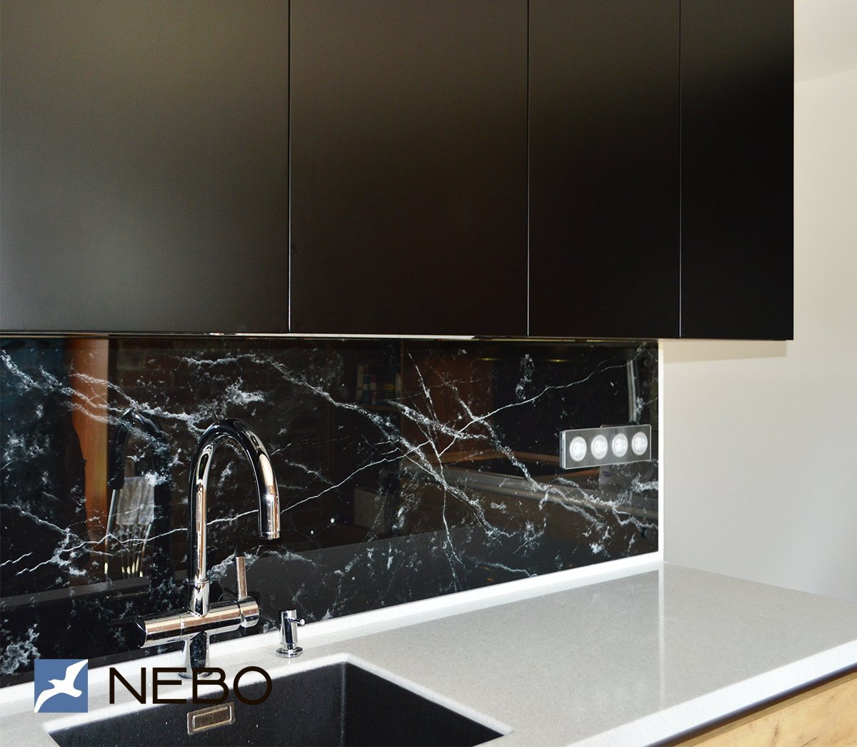Фартук для кухни черный мрамор