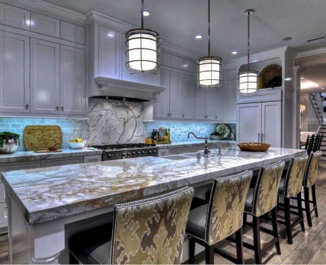 Голубой мрамор в интерьере кухни