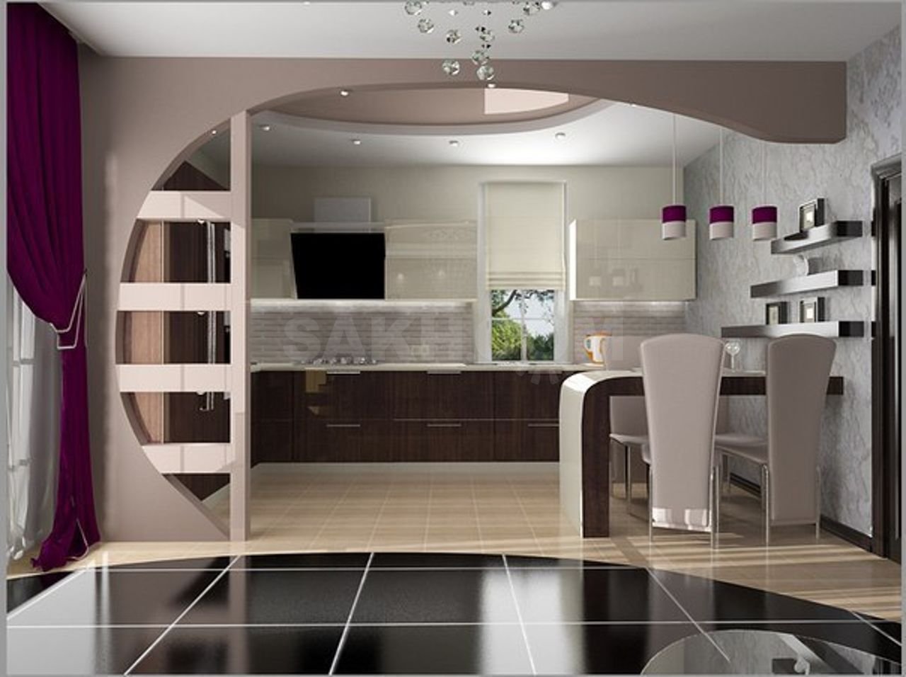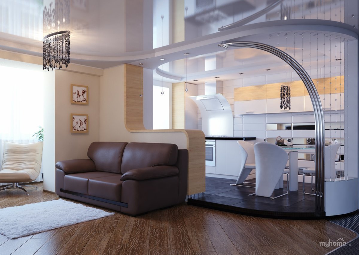 Перегородка для зонирования кухни и гостиной