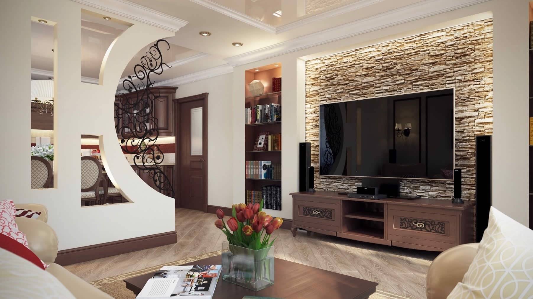 Перегородка в гостиной для зонирования