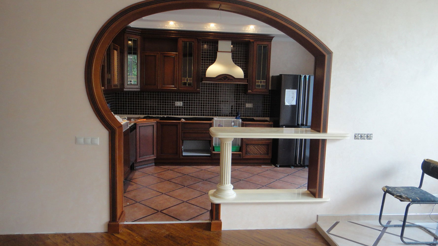 Кухня с аркой и барной стойкой