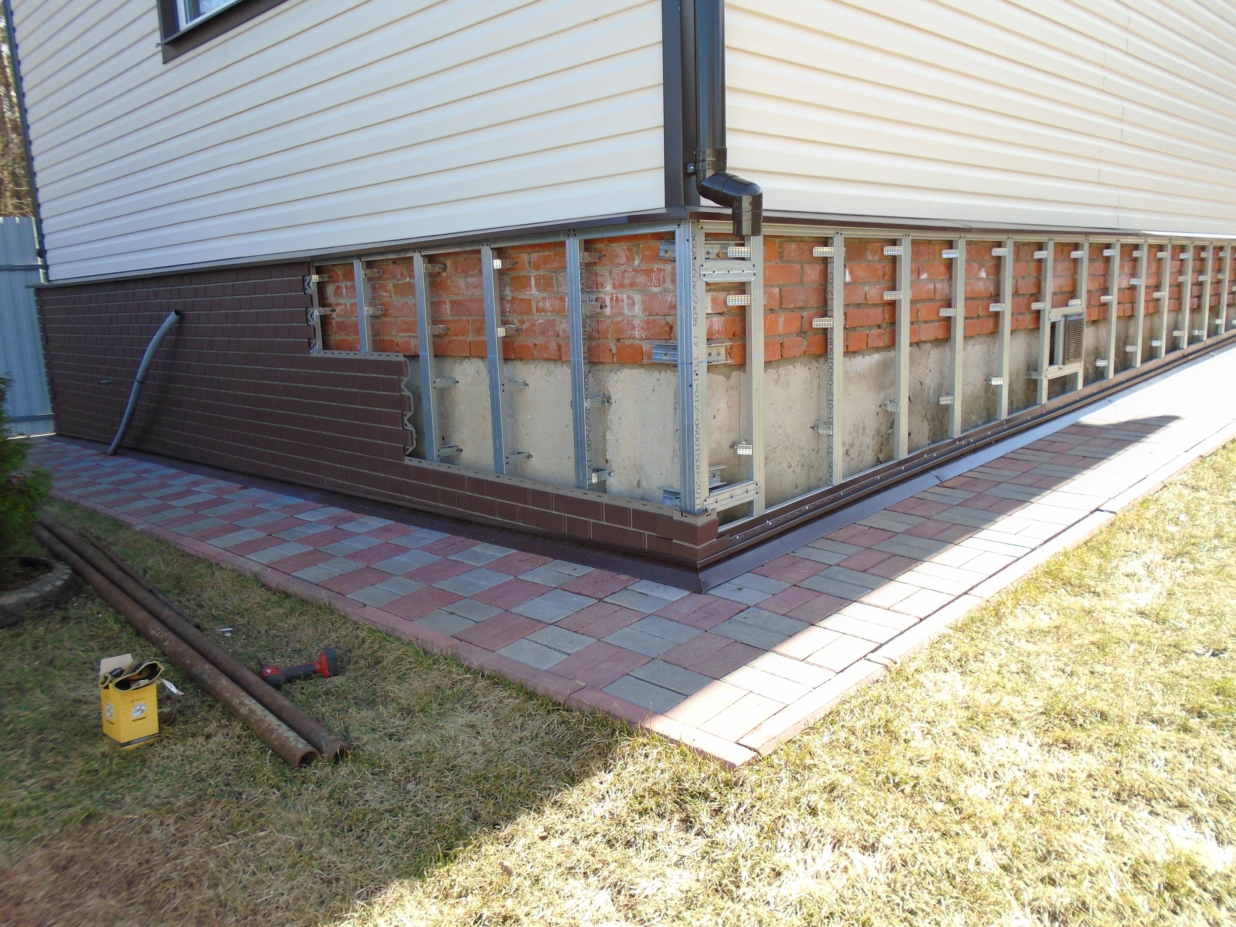Обшивка цоколя металлопрофиль под камень