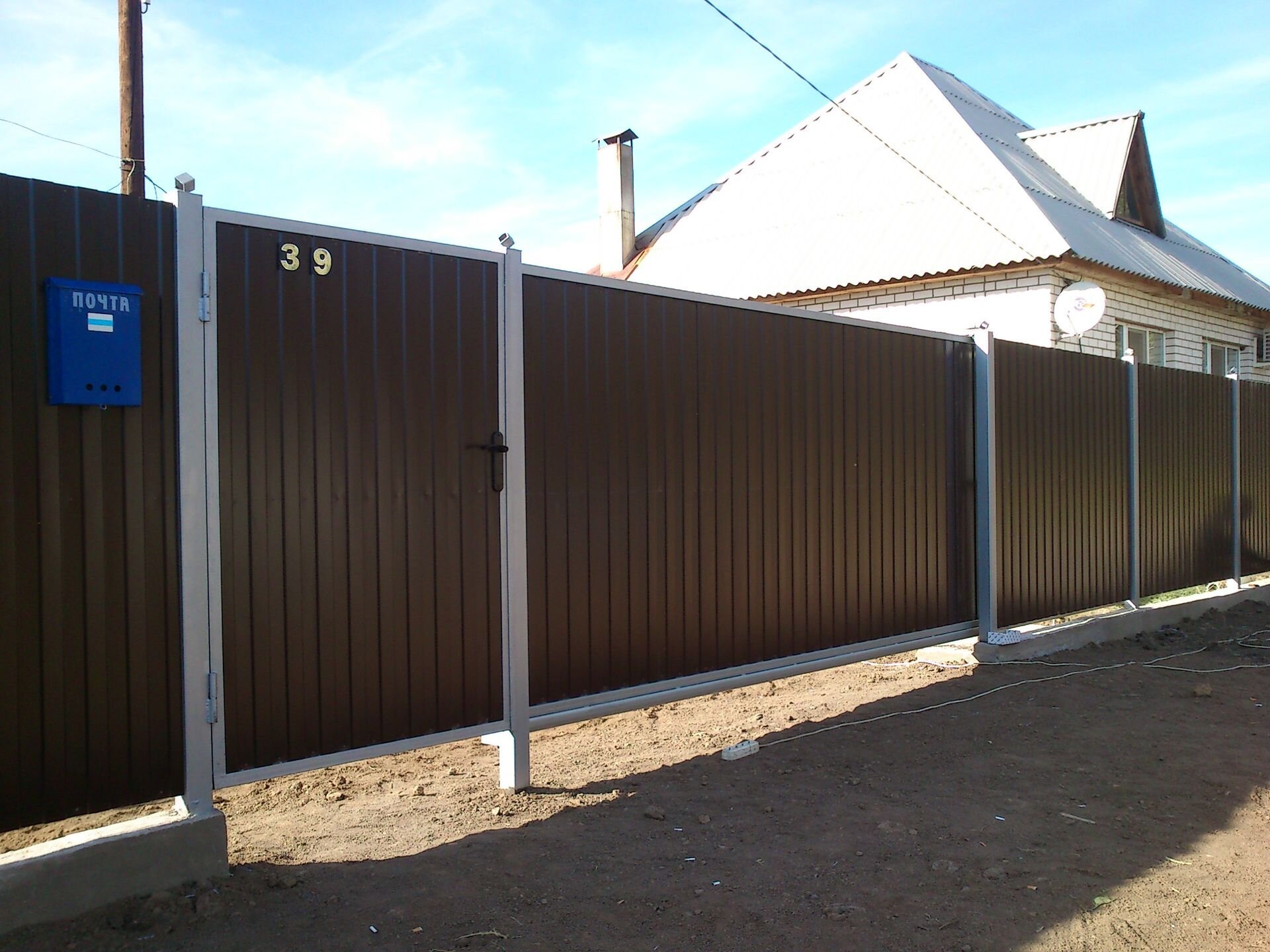 Заборы перед домом из профлиста с элементами