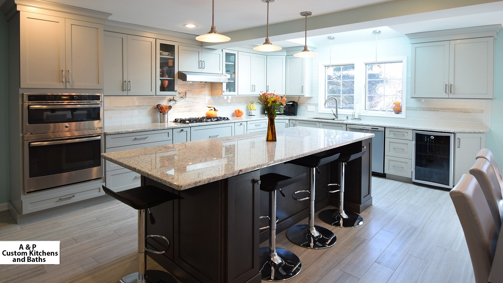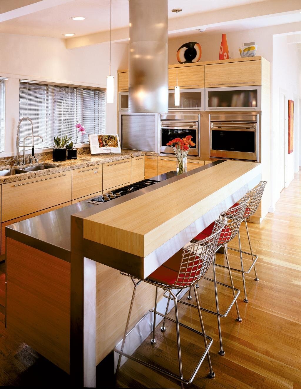 Кухонный остров с плитой и барной стойкой