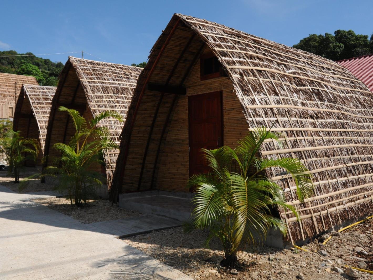 Цилиндрические домики из бамбука