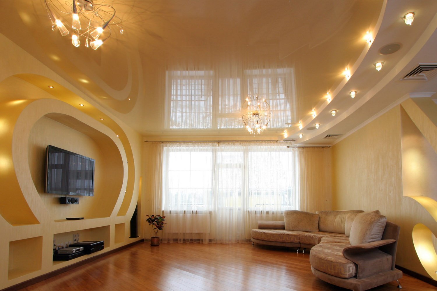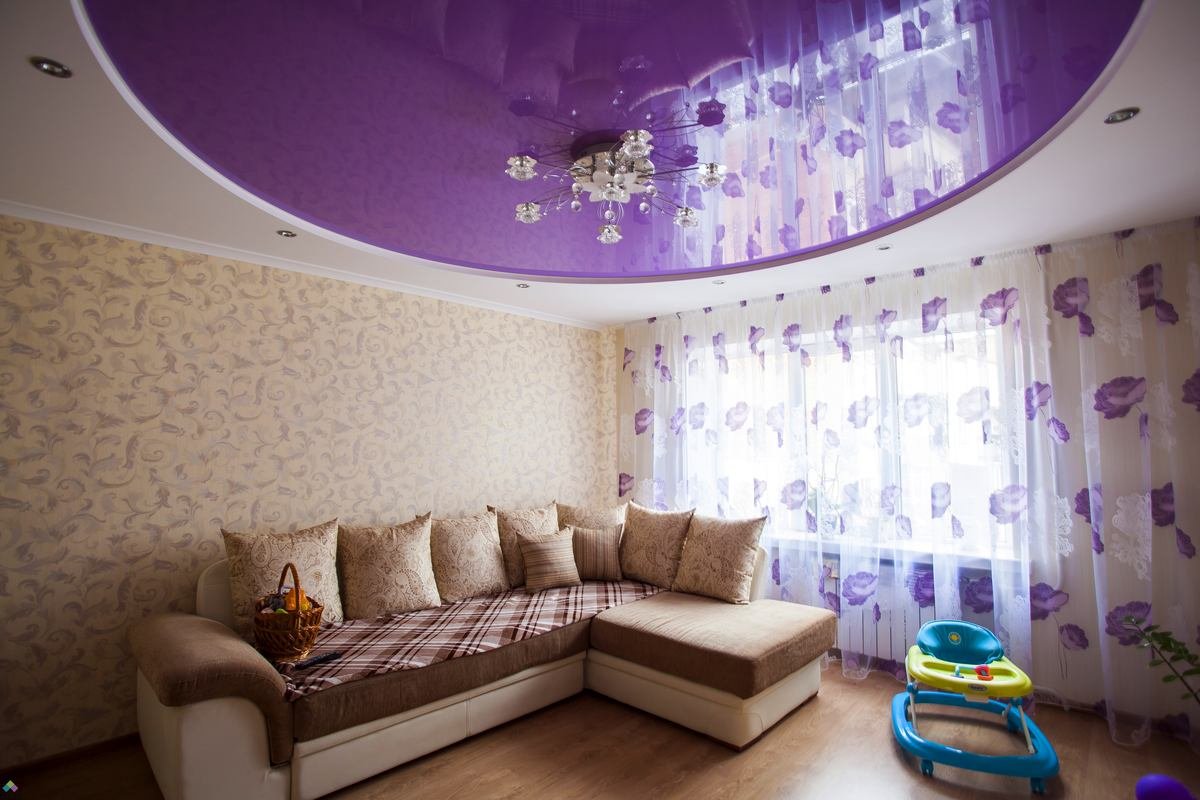 Натяжной потолок в гостиной