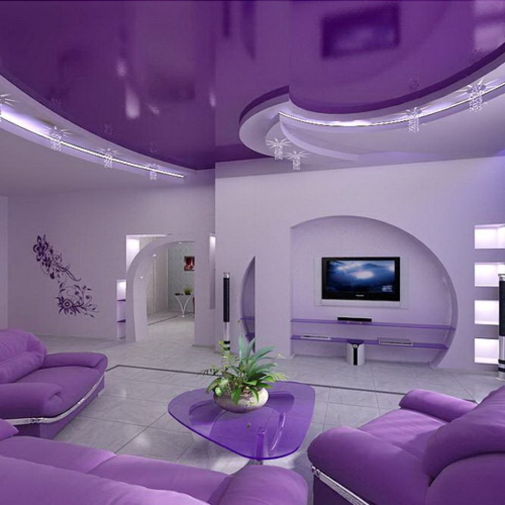 Интерьер гостинной в сиреневых тонах