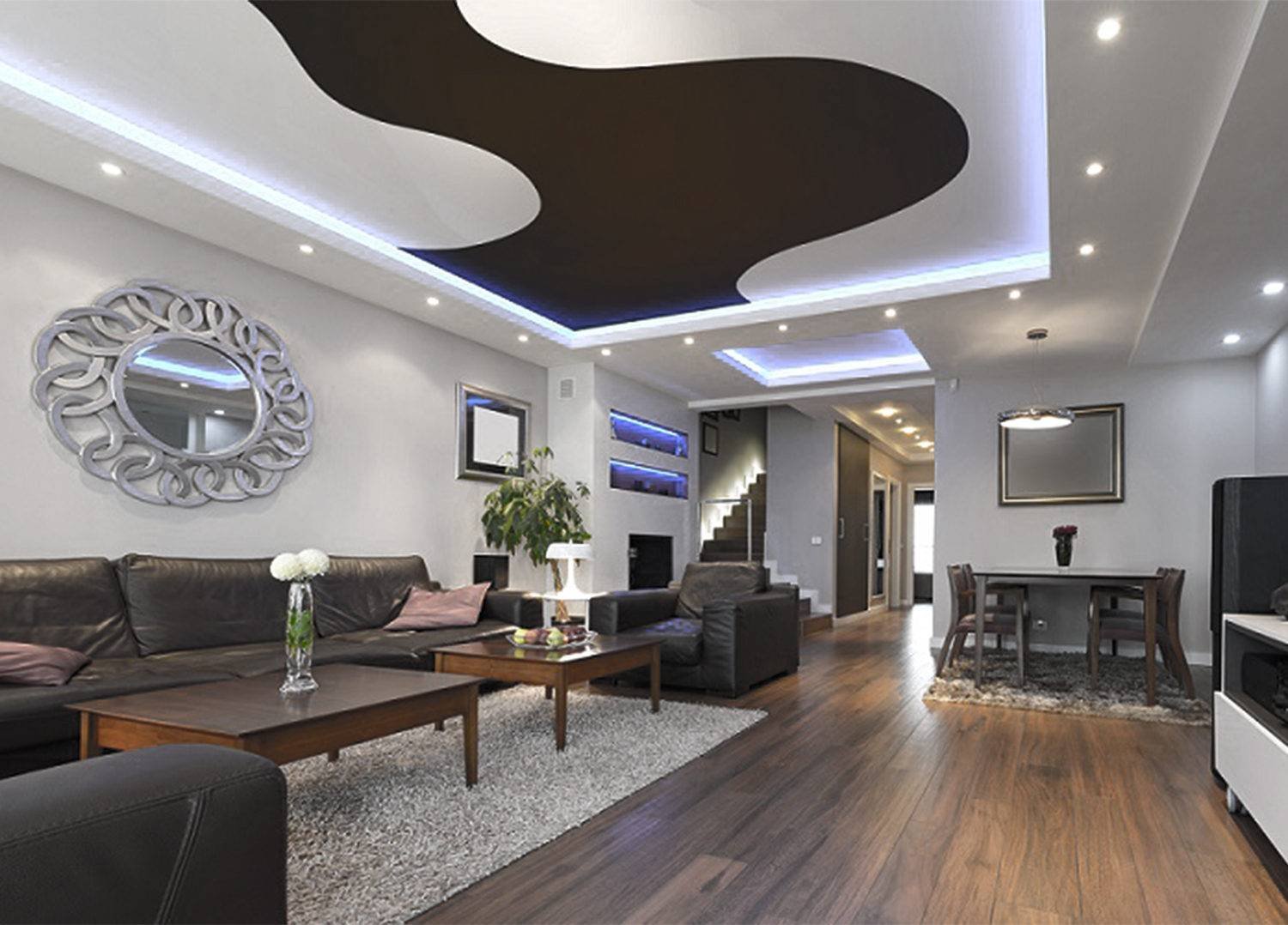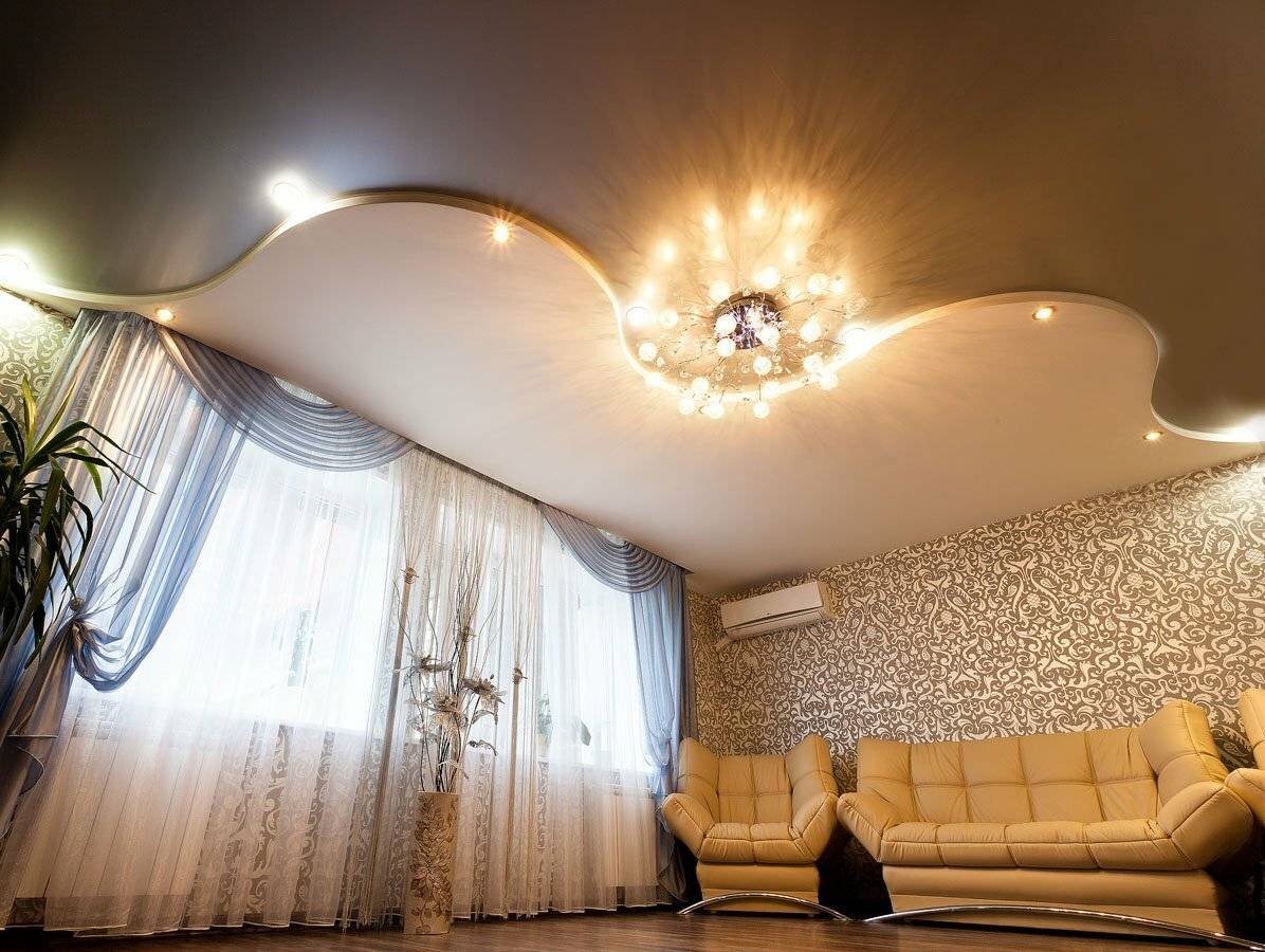 Потолки из гипсокартона для гостиной двухуровневые