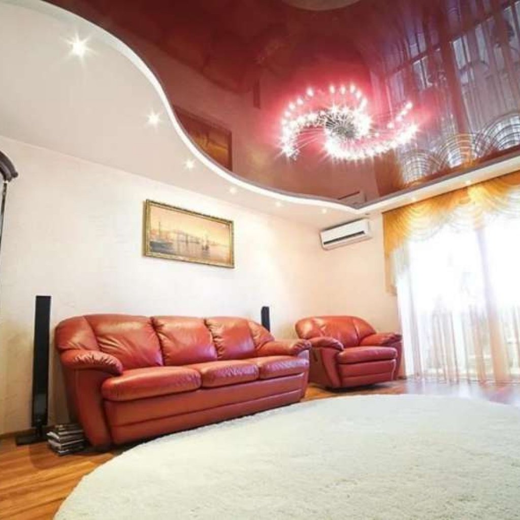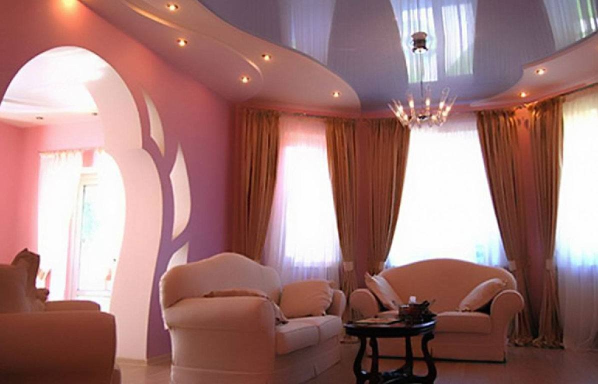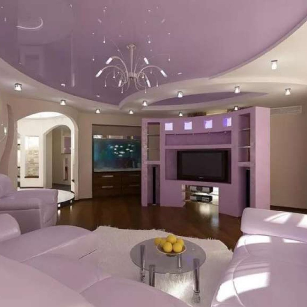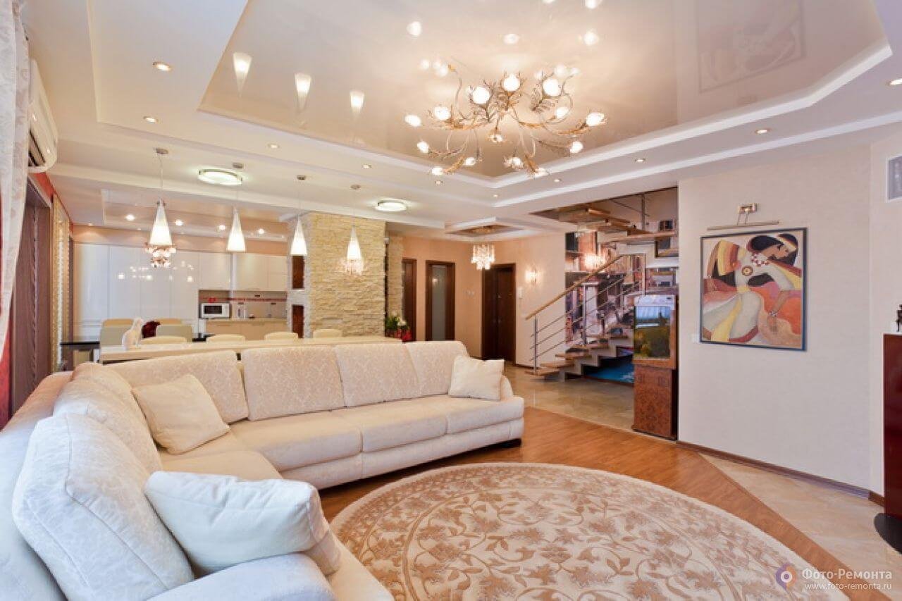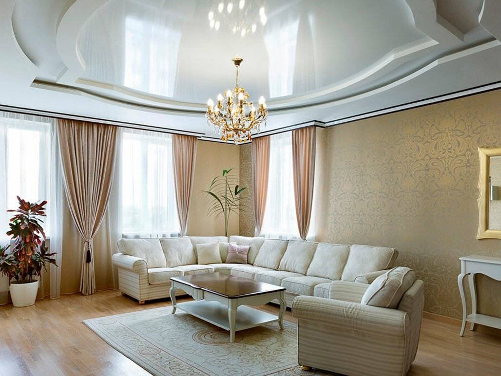 Красивые натяжные потолки для зала в доме