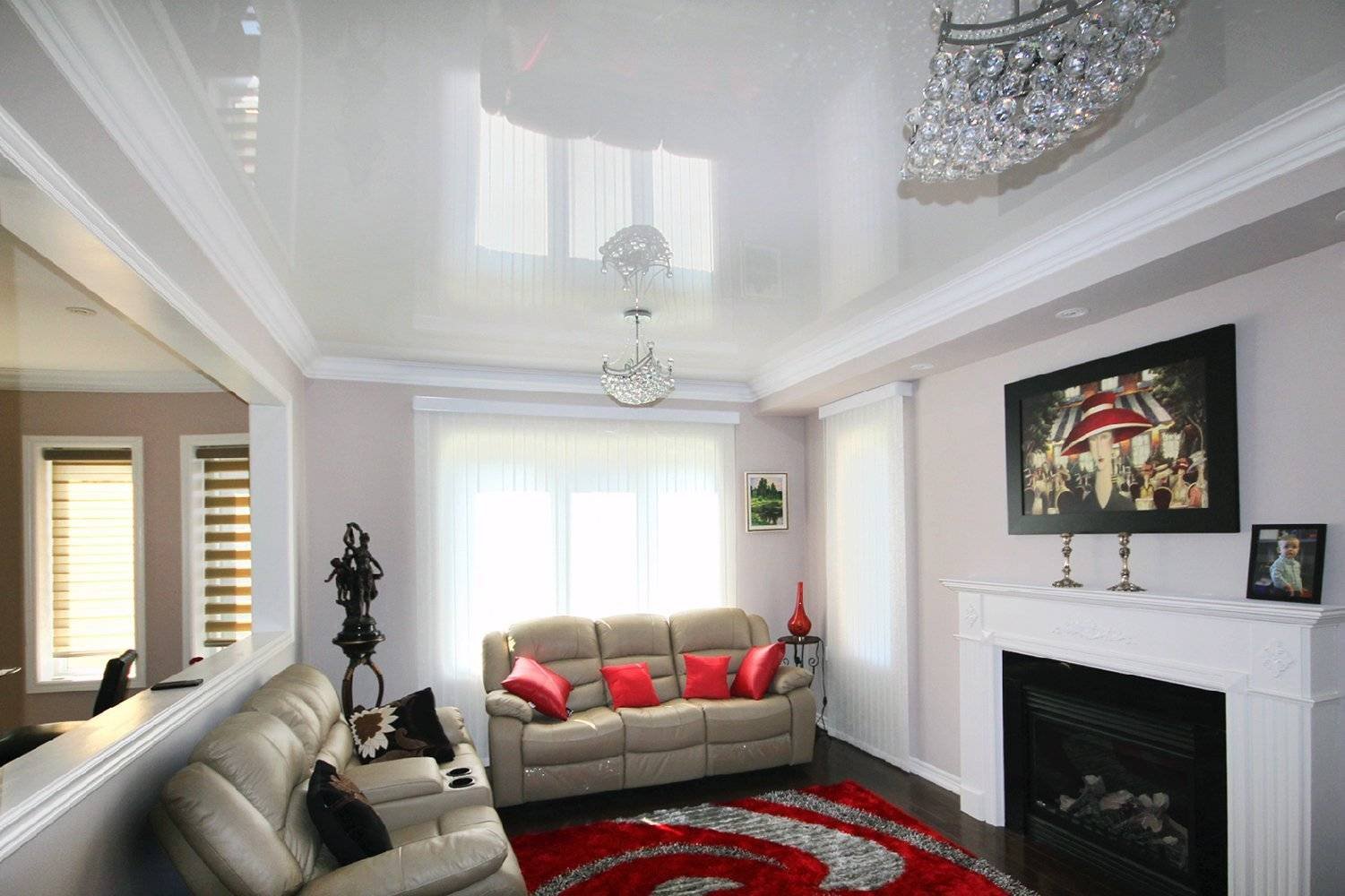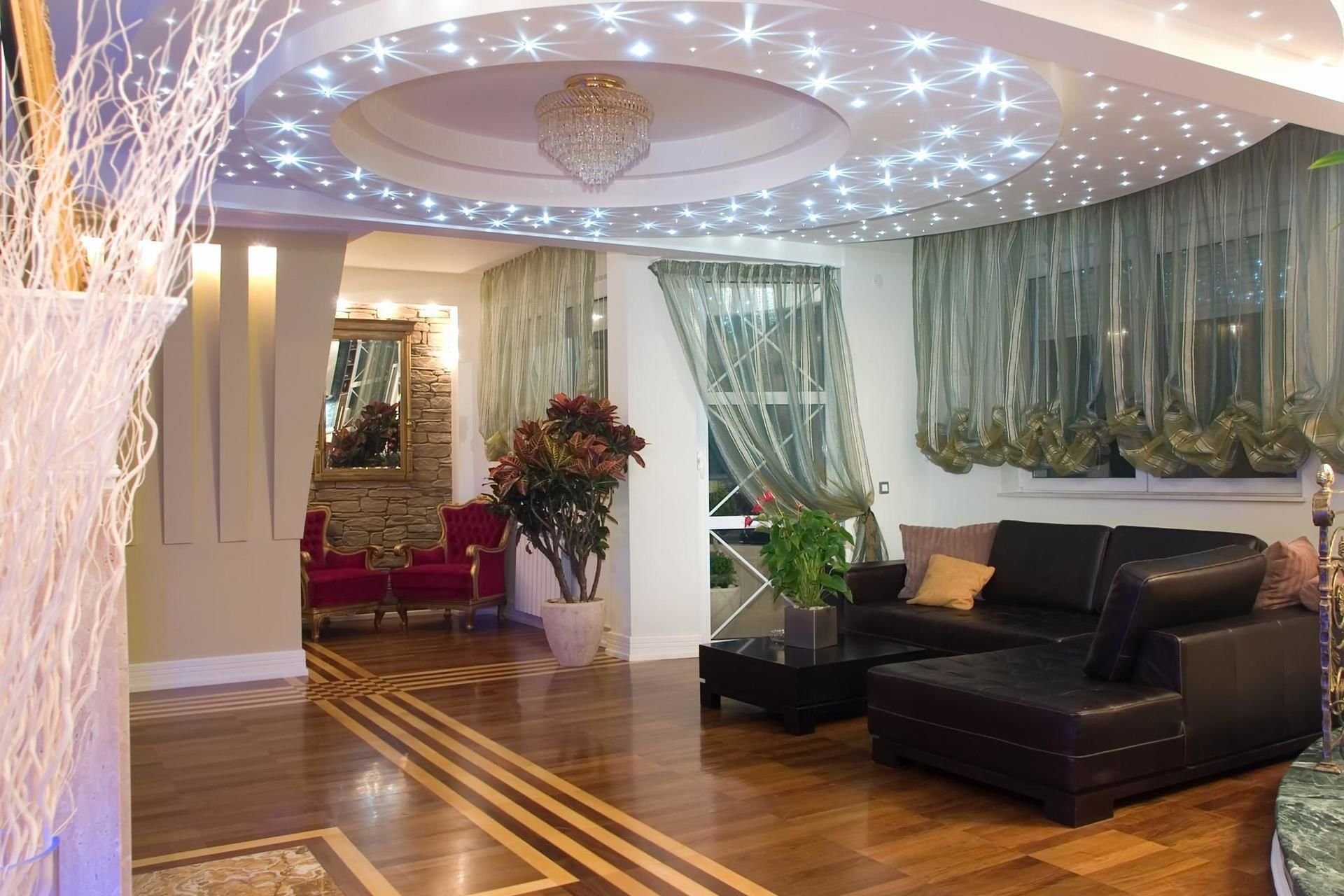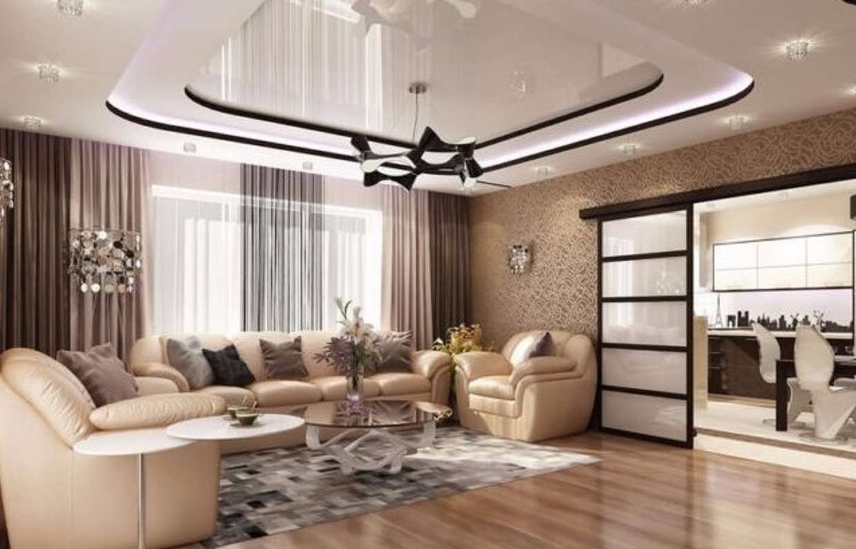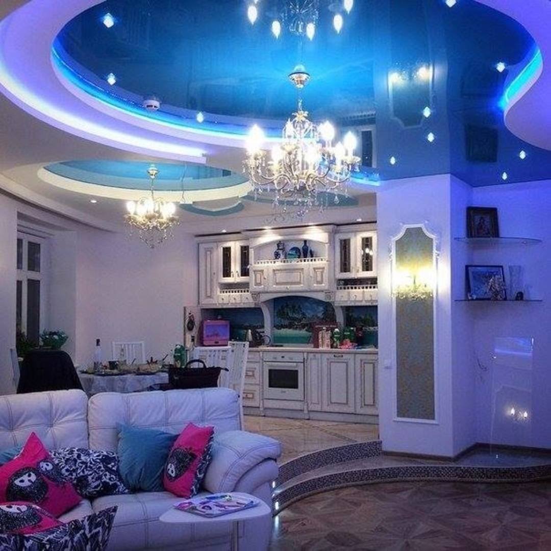 Красивые натяжные потолки для зала в доме