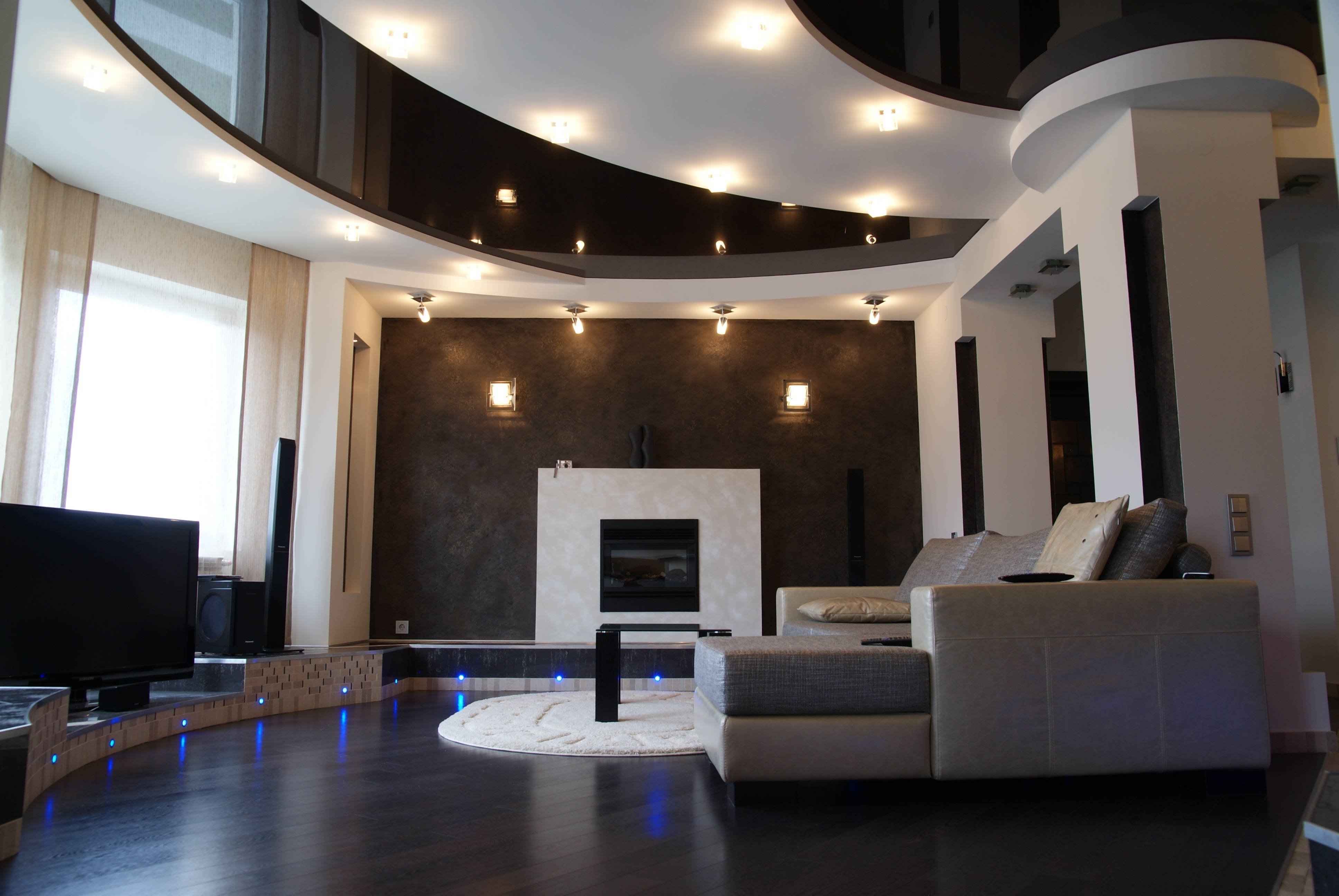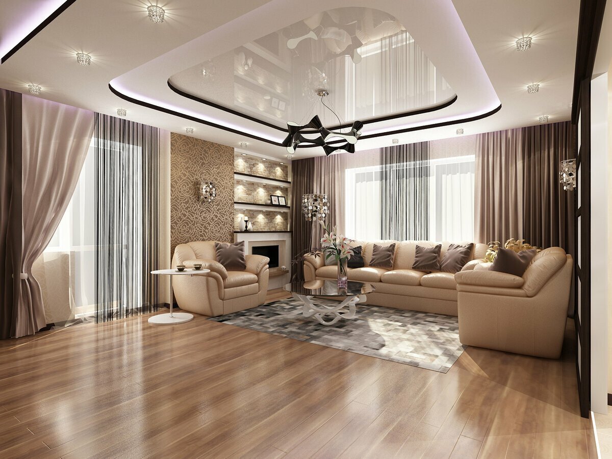 Многоуровневый потолок в гостиной