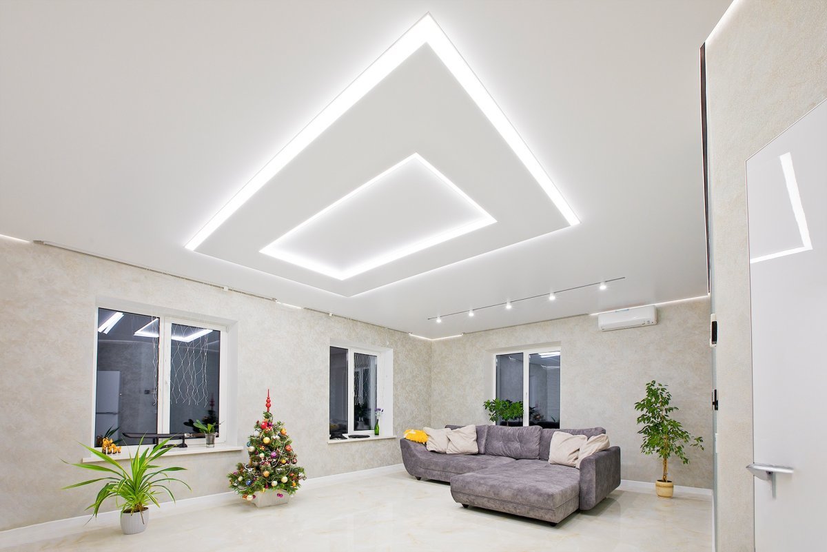 Натяж потолок светильники для зала расположение