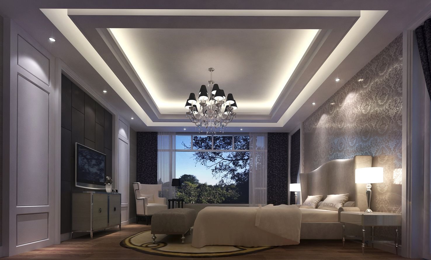 Натяжные потолки в спальне обычные