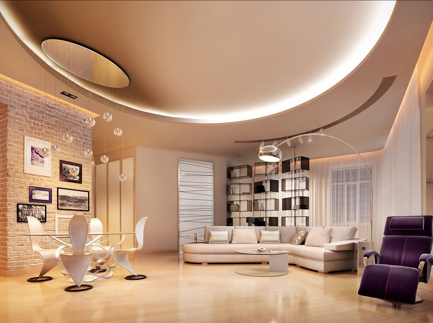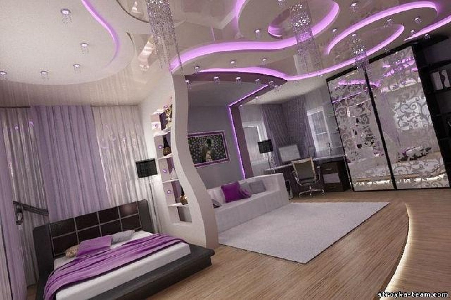 Зонирование комнаты с натяжными потолками