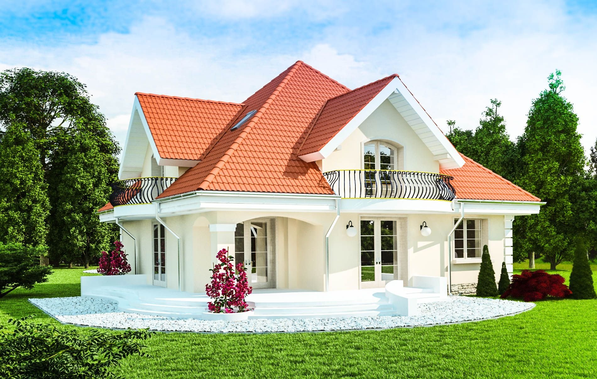 Белый дом красная Черепичная крыша