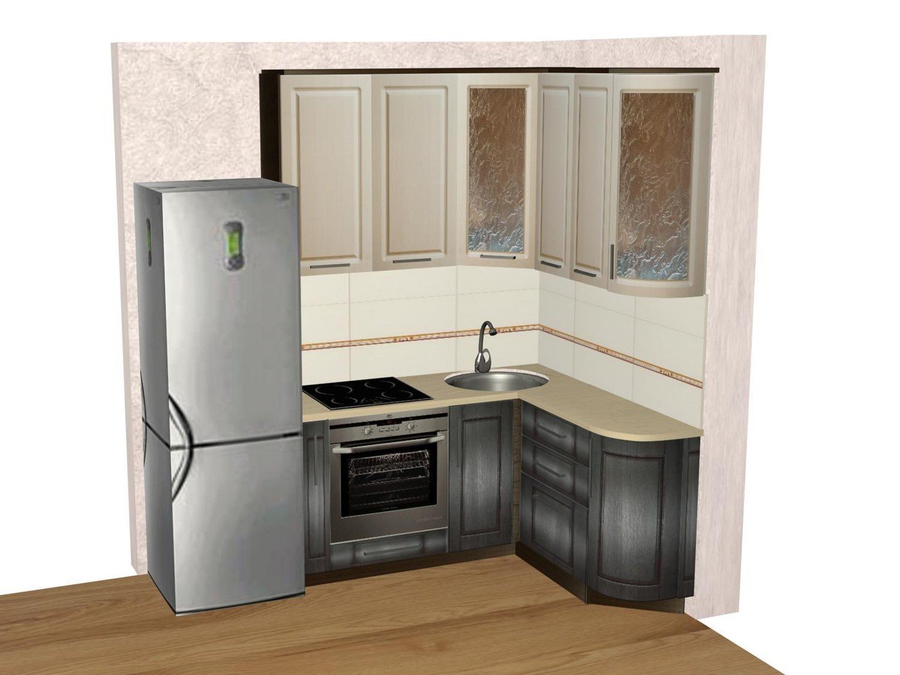 Маленькая угловая кухня с холодильником