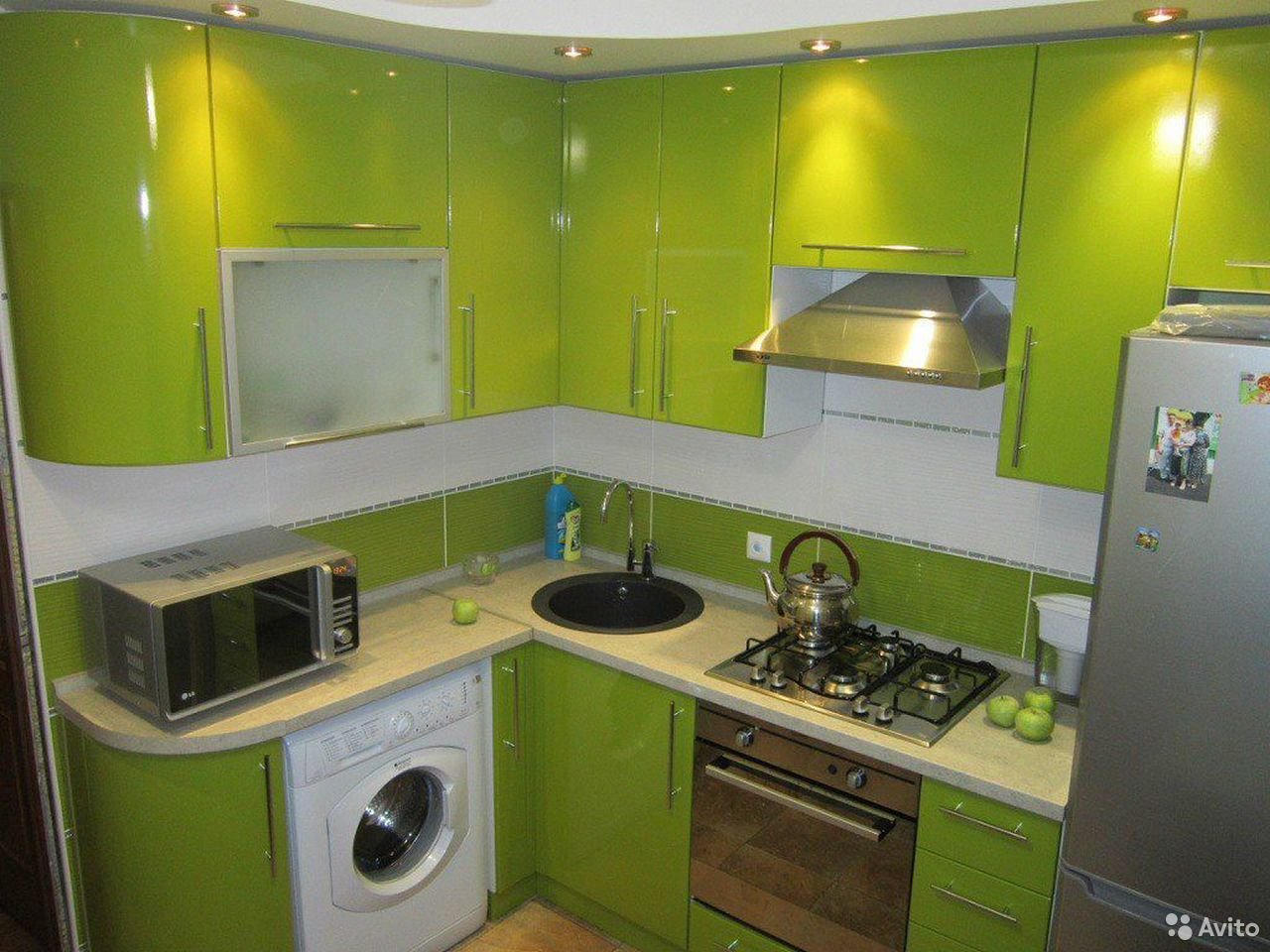 Кухня угловая салатовая маленькая