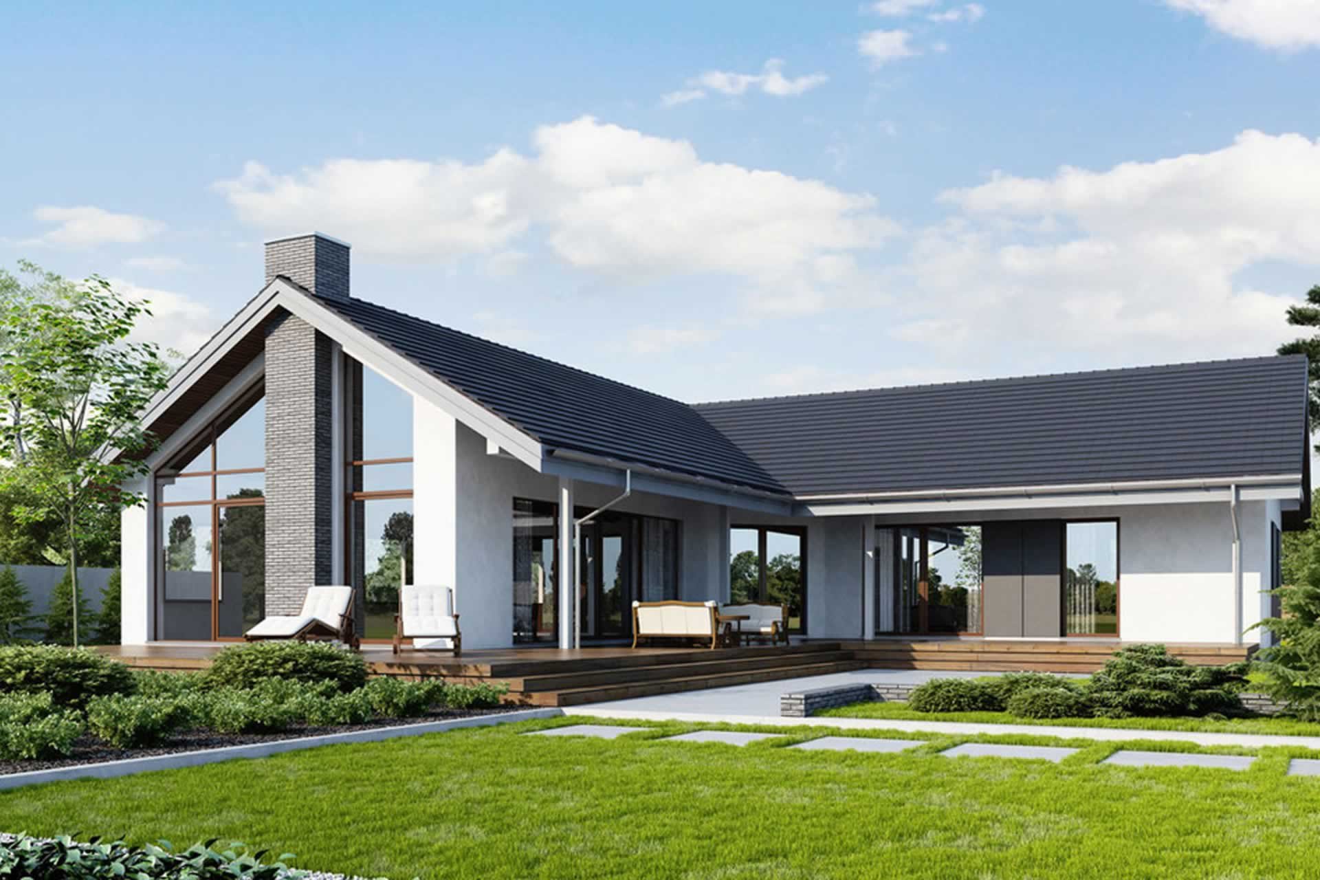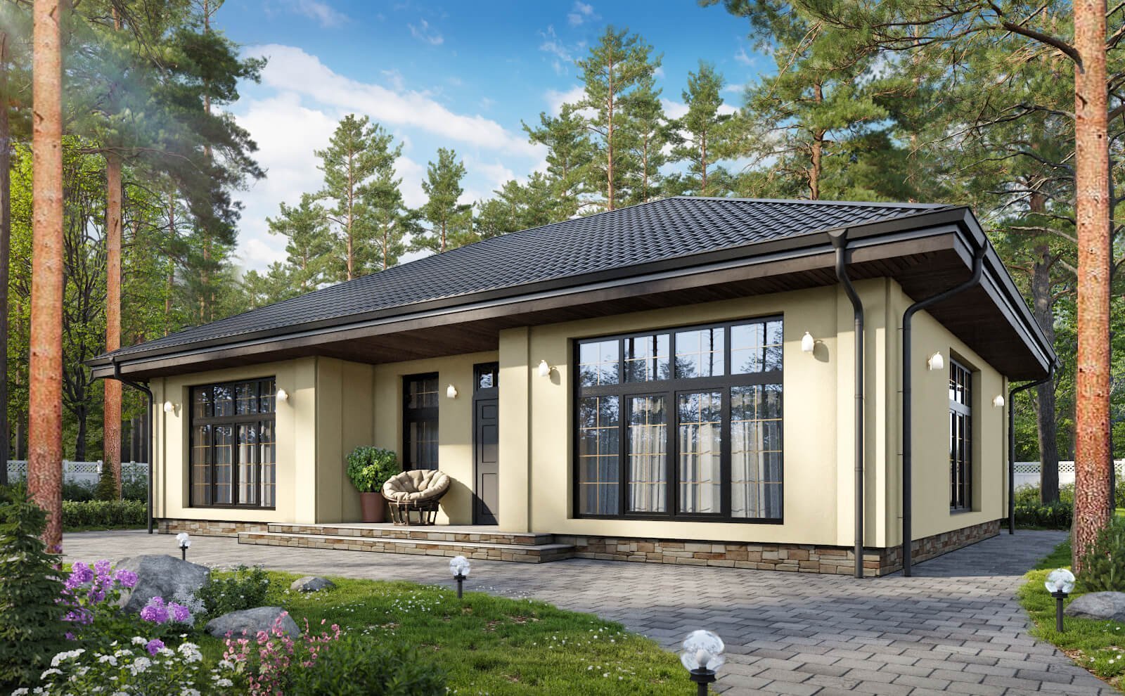 Дом Шале одноэтажный 100 кв.м из кирпича