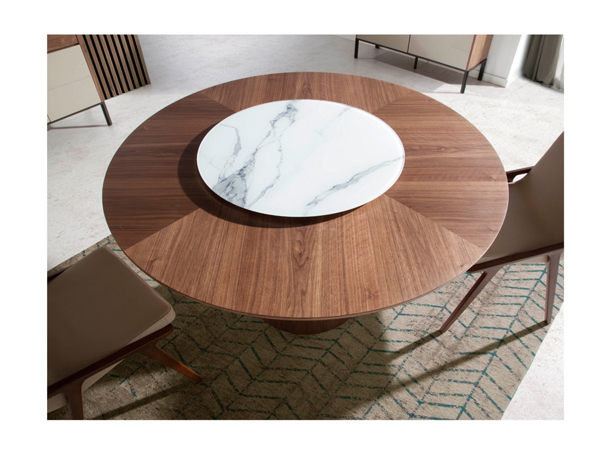 Круглый обеденный стол MK-1315-DB Индонезия с менажницей раздвижной