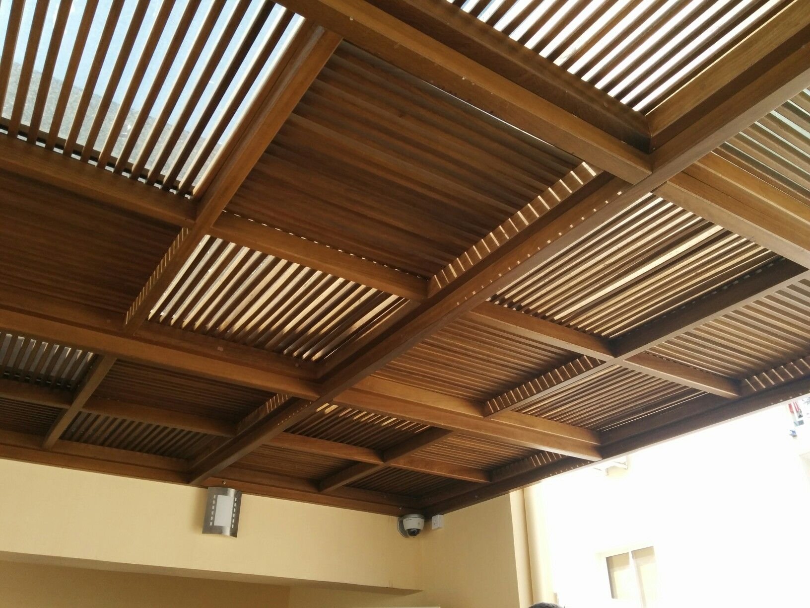 Потолок в беседке с балками