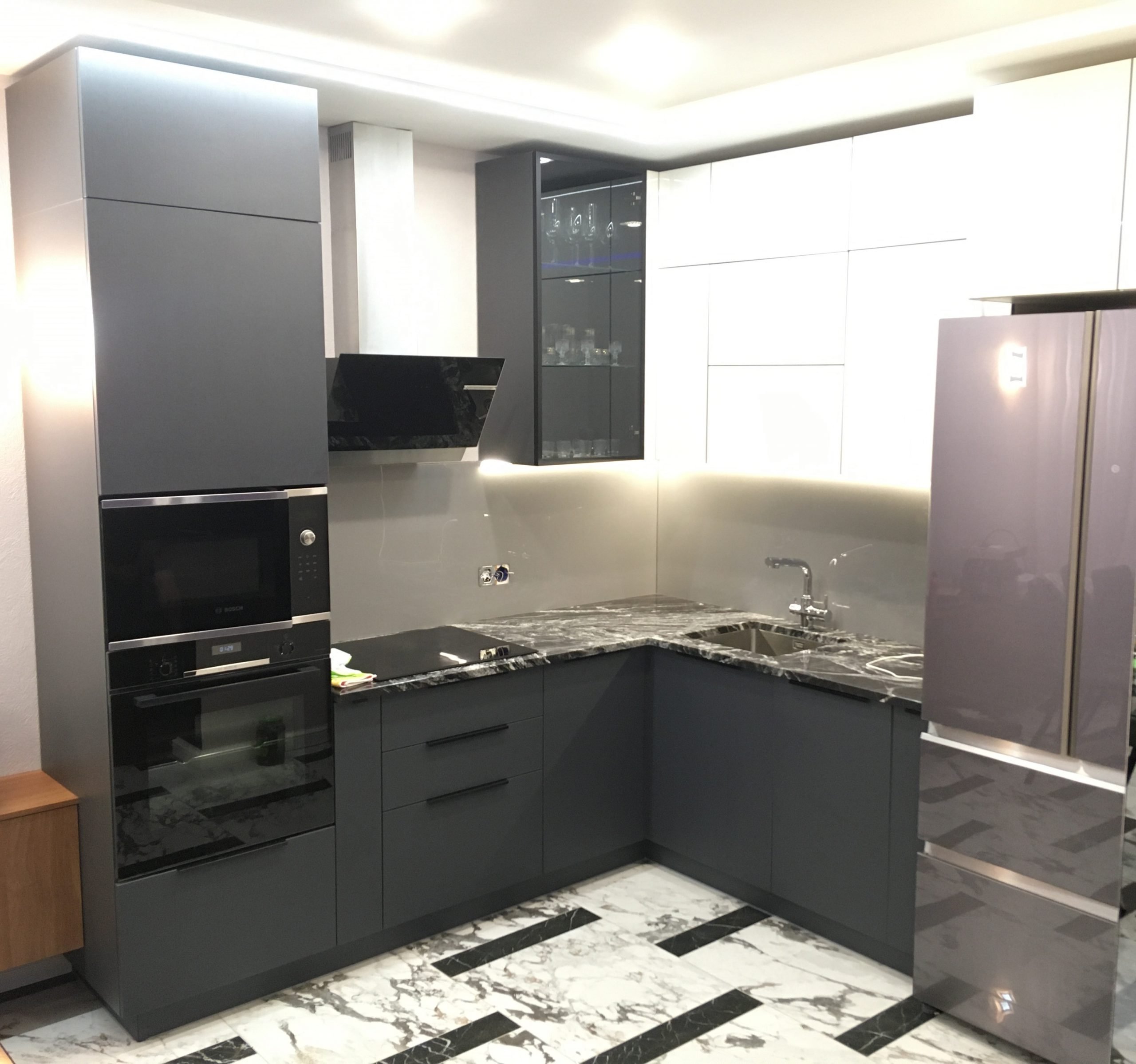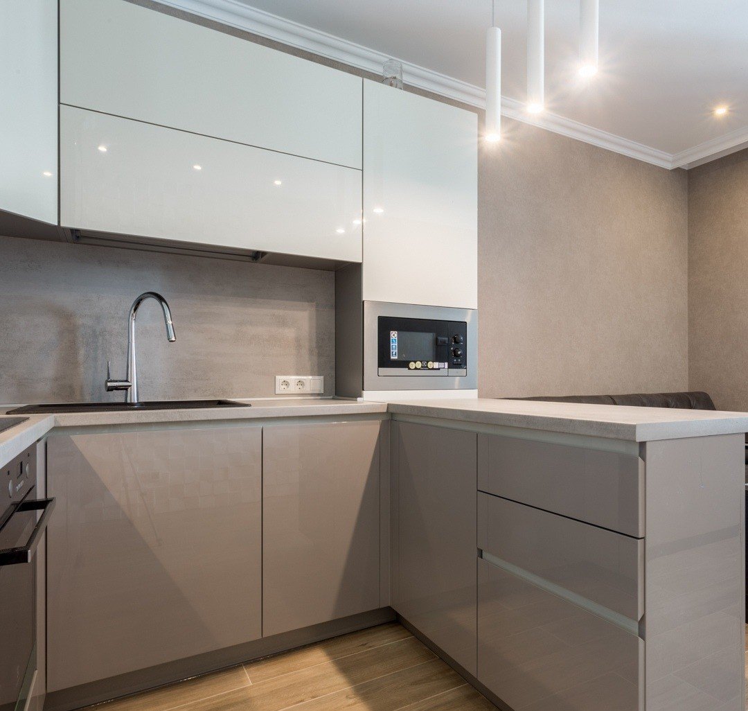 Серая глянцевая кухня