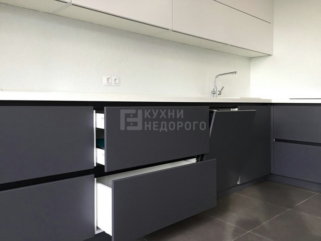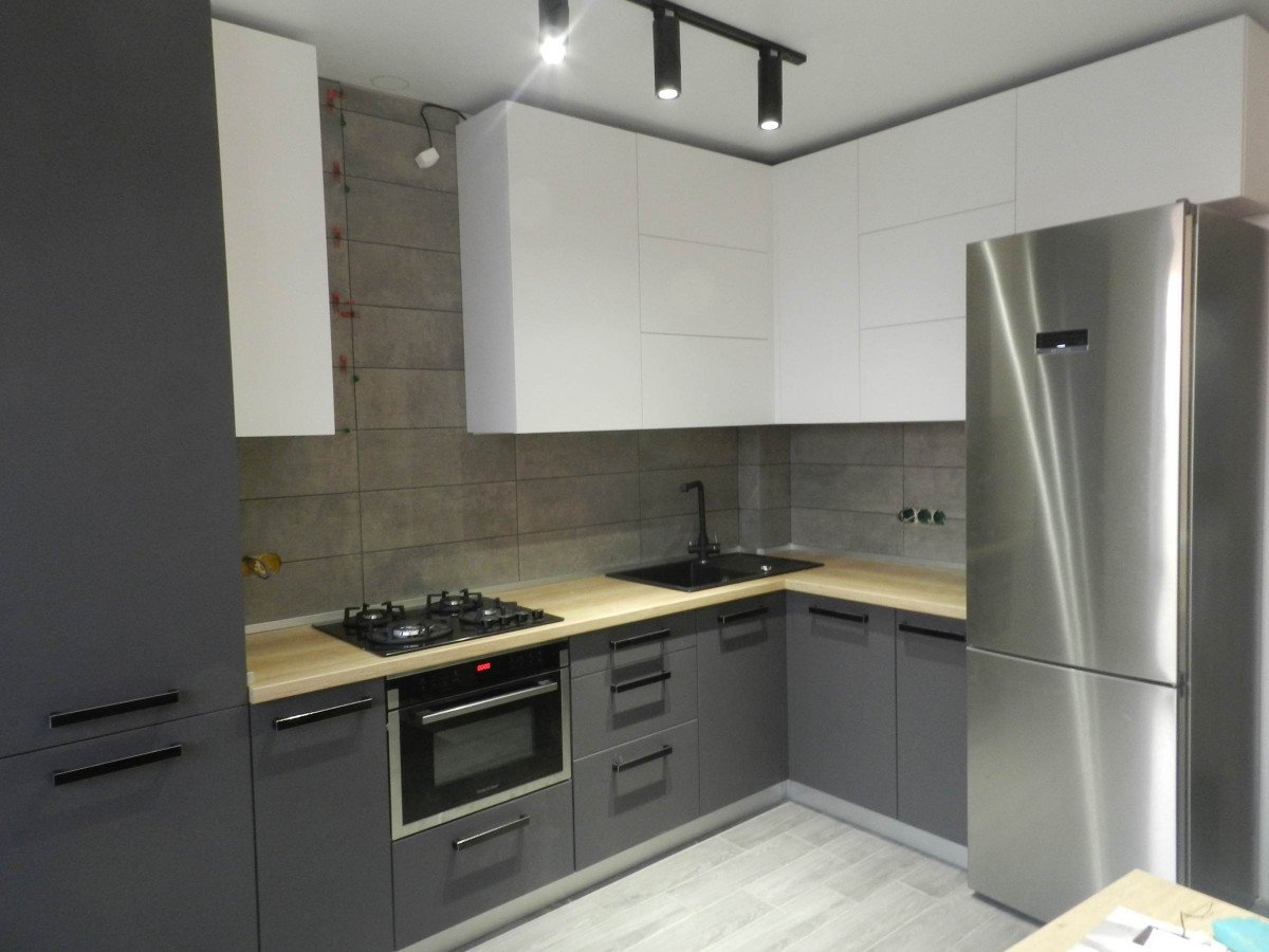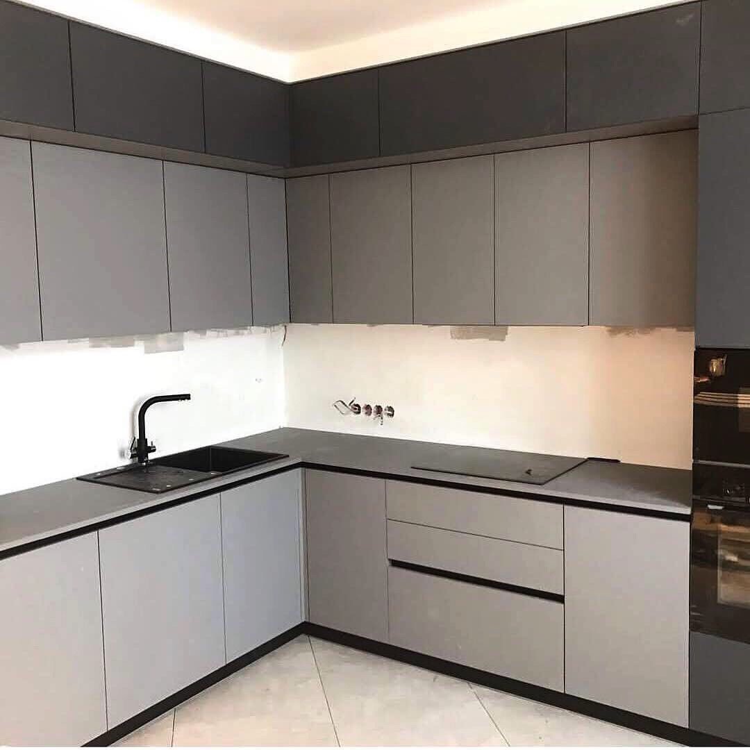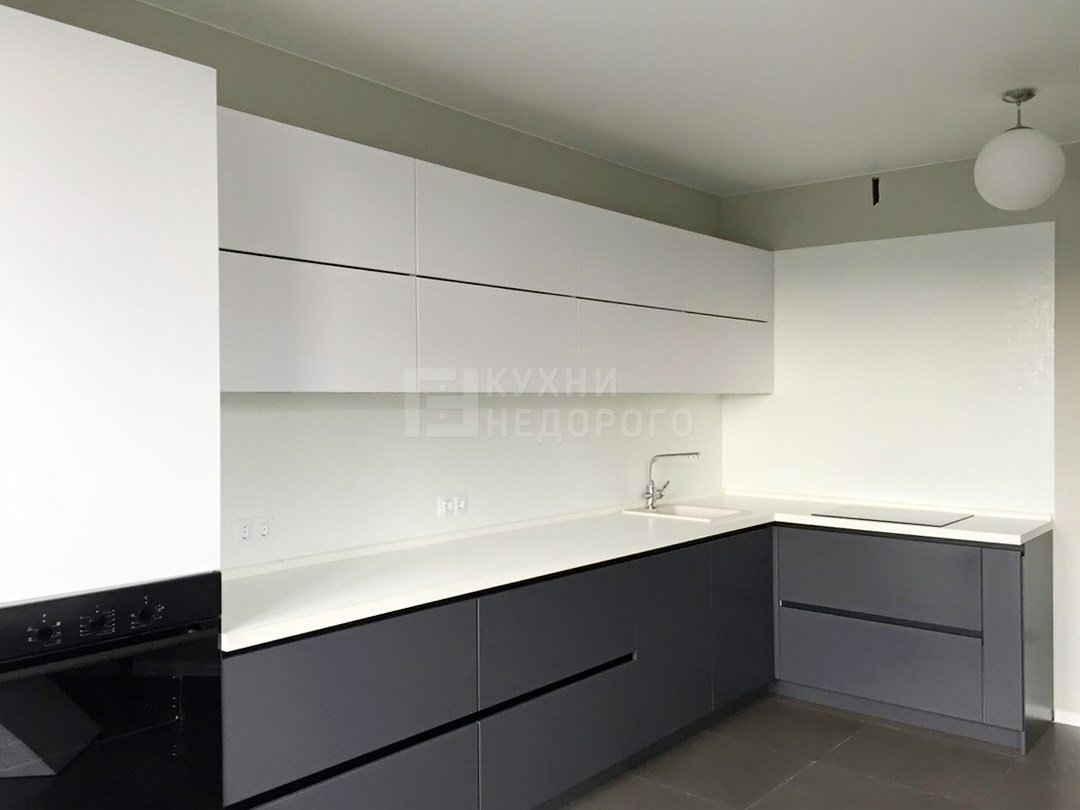 Кухня серая матовая угловая