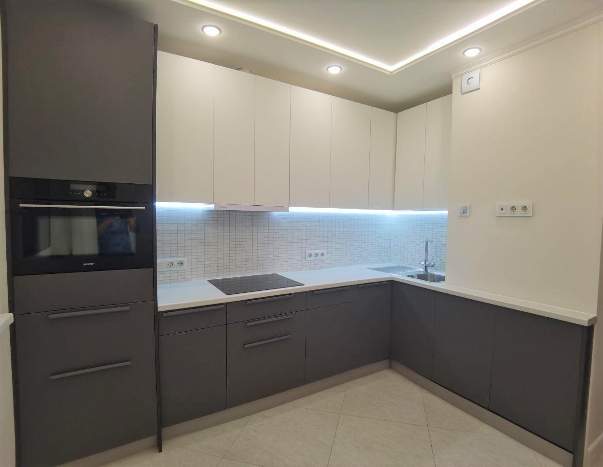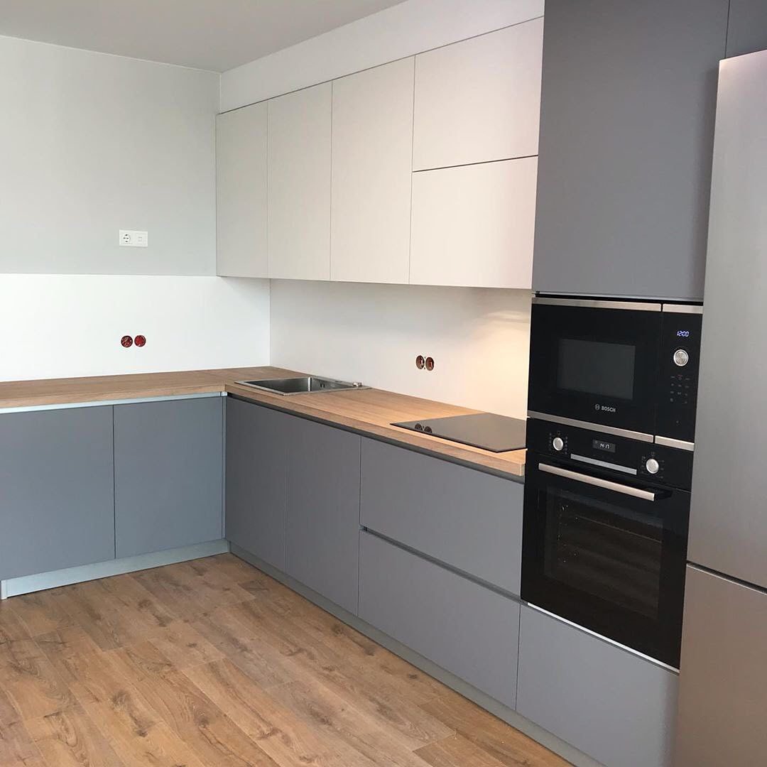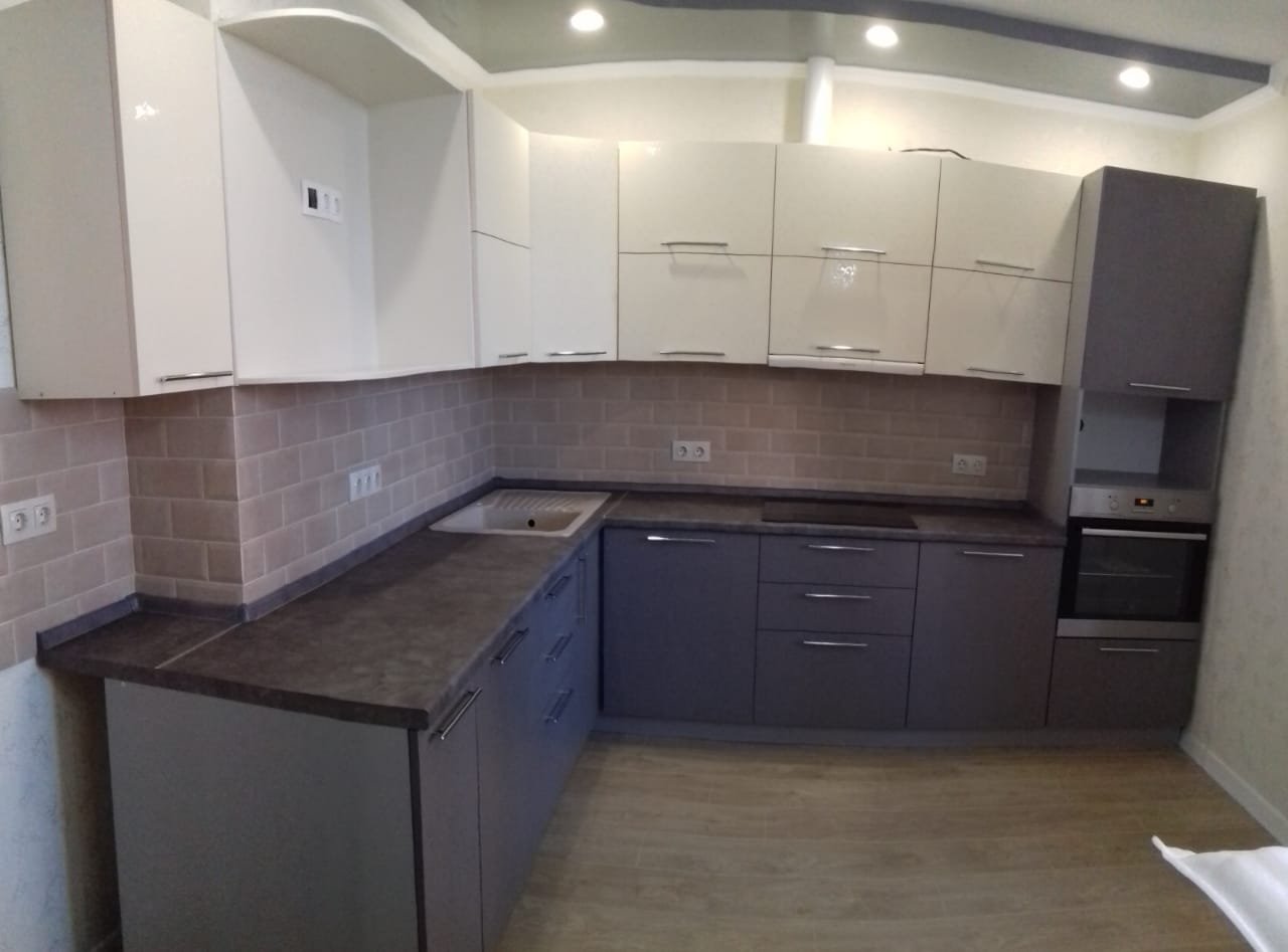 Кухня серая матовая угловая