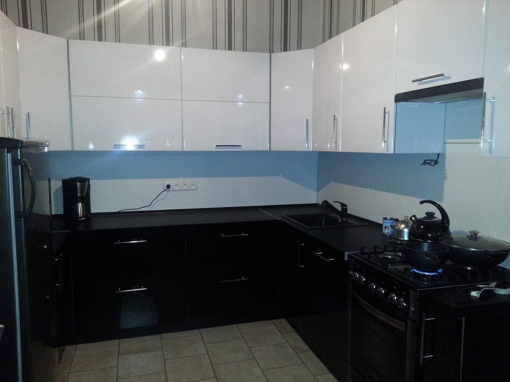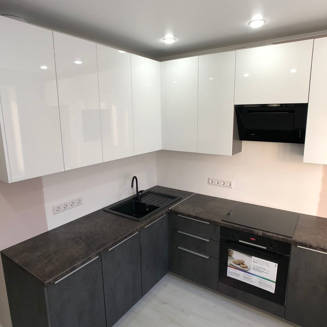 Кухонный гарнитур белый верх черный низ