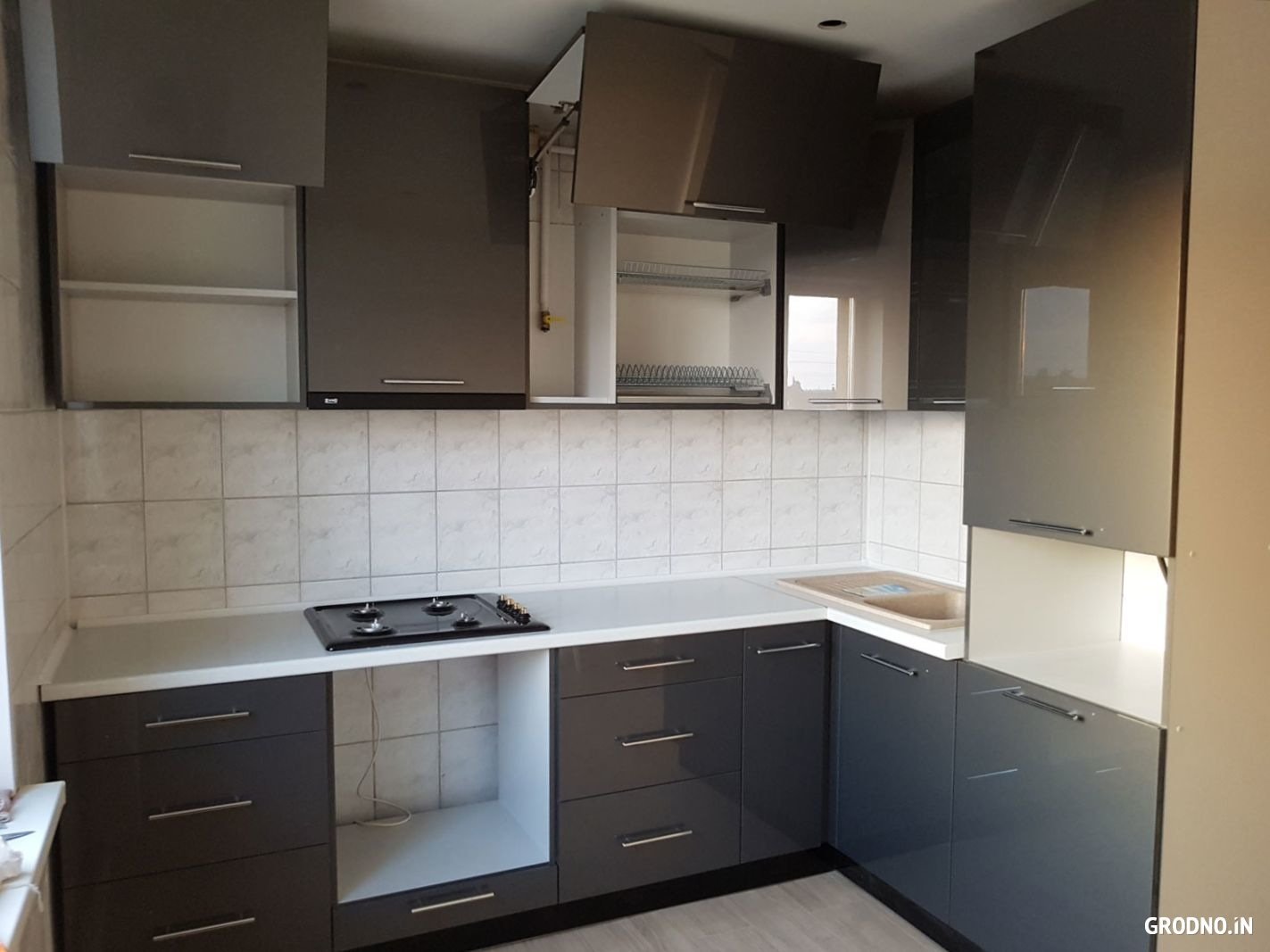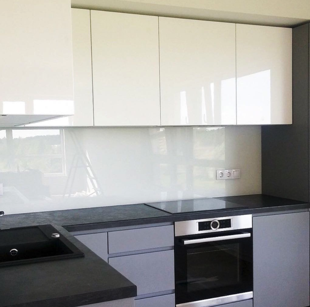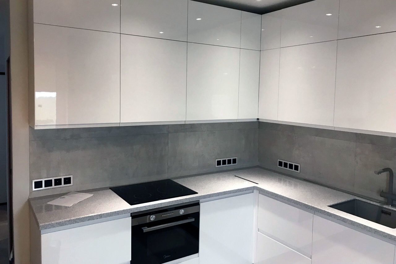 Серые глянцевые фасады для кухни